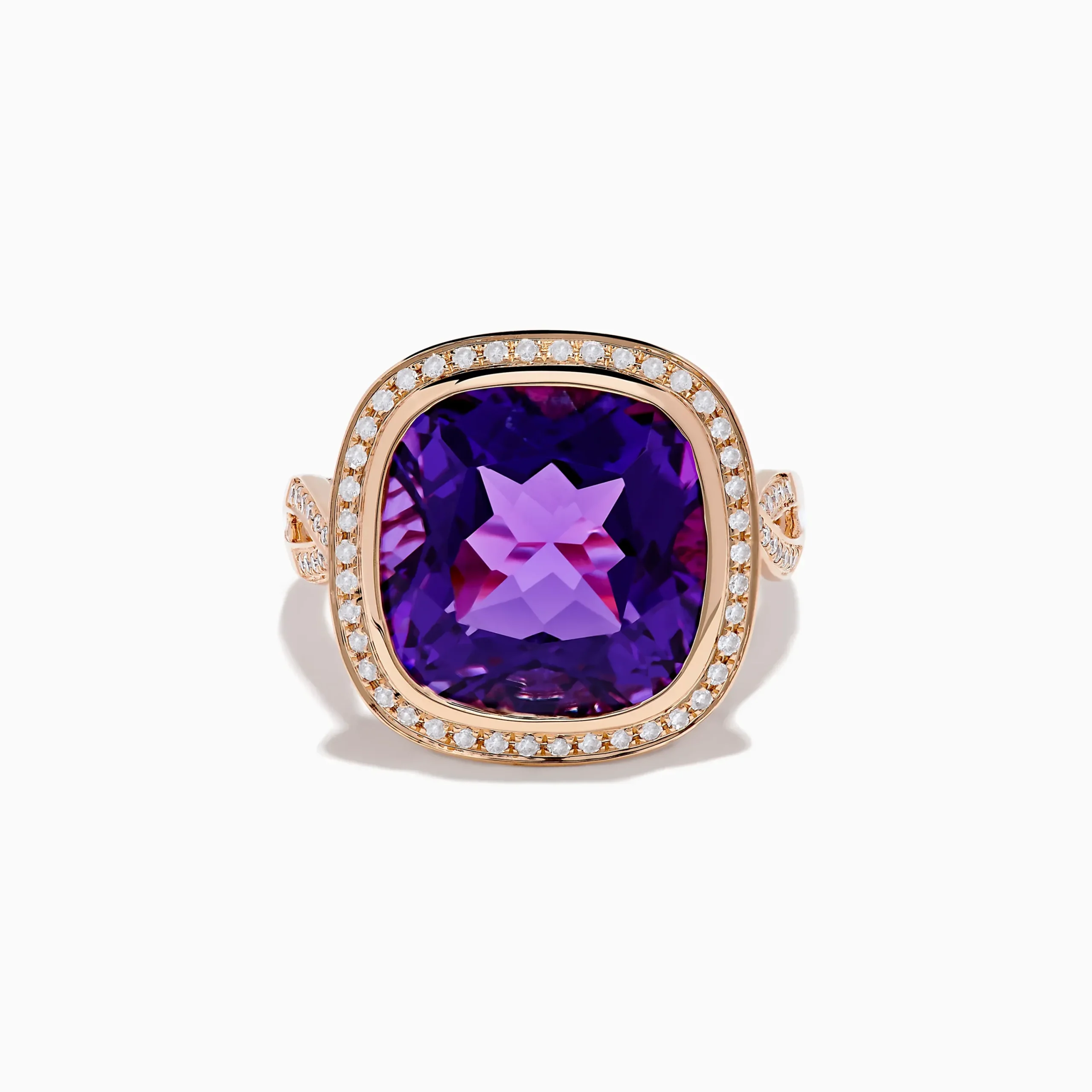 14K Rose Gold Amethyst and Diamond Cocktail Ring