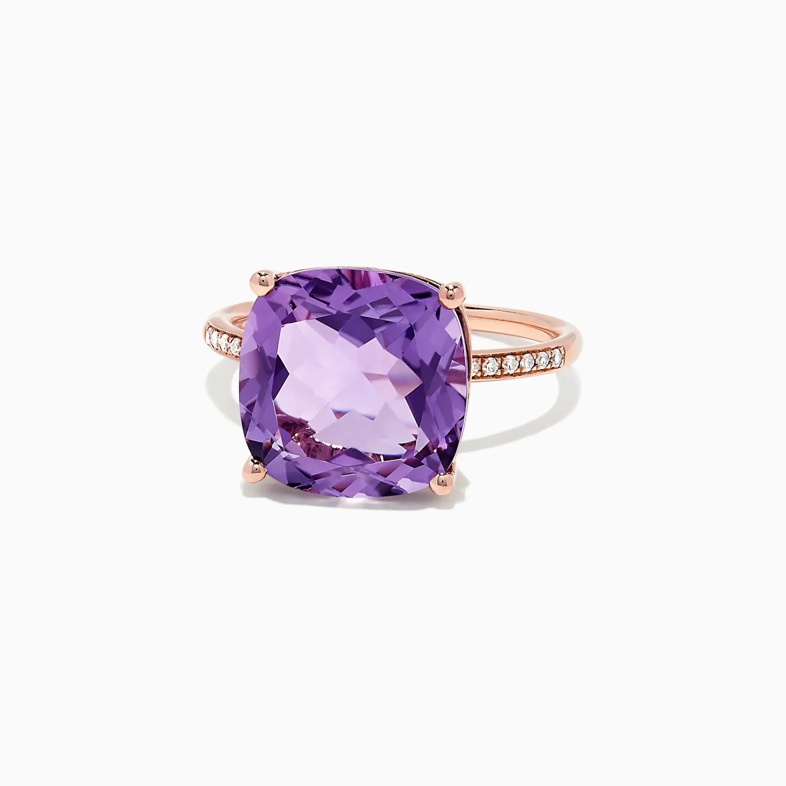 Effy 14K Rose Gold Amethyst and Diamond Ring, 6.65 TCW