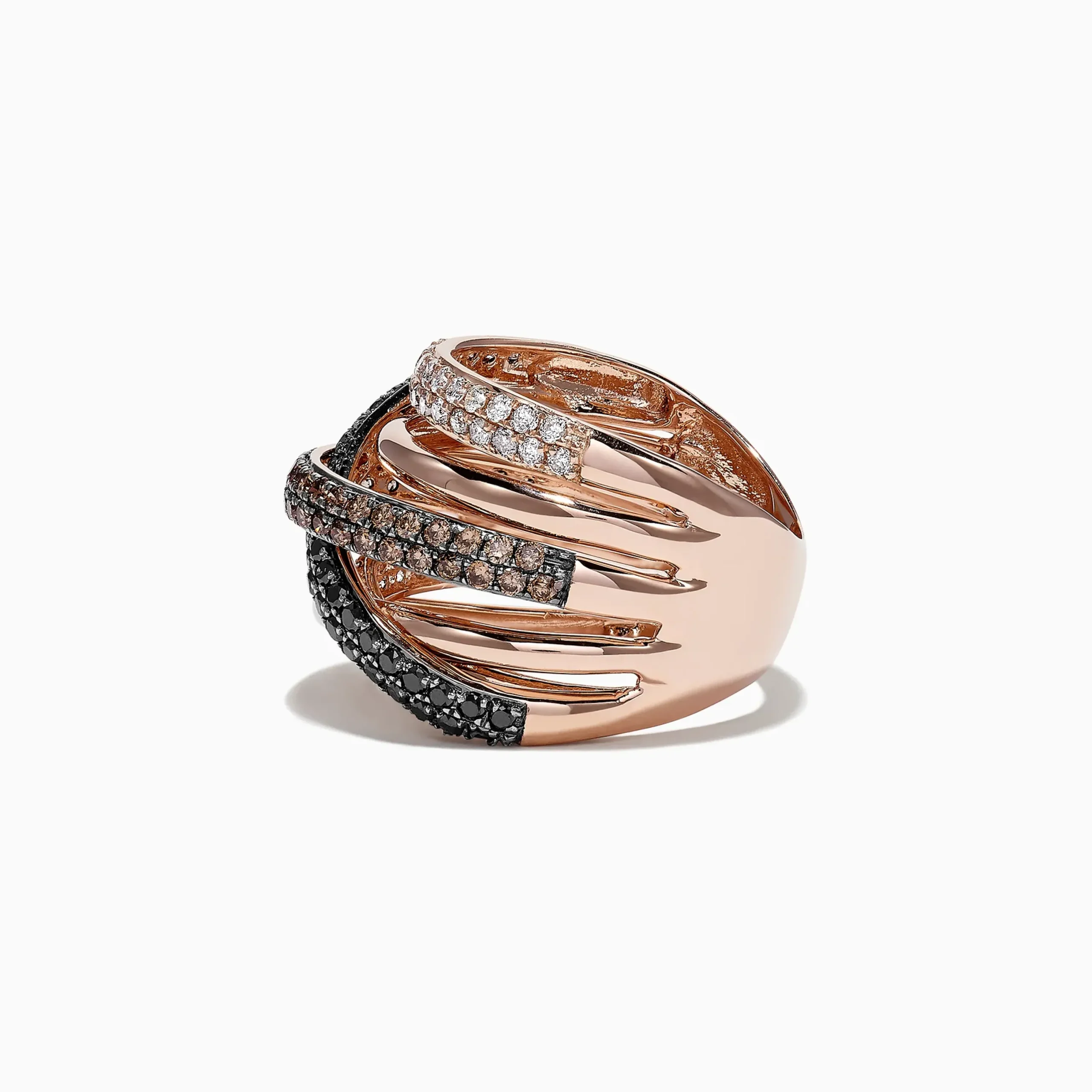 Espresso Effy 14K Rose Gold Black, Brown and White Diamond Ring, 1.47 TCW
