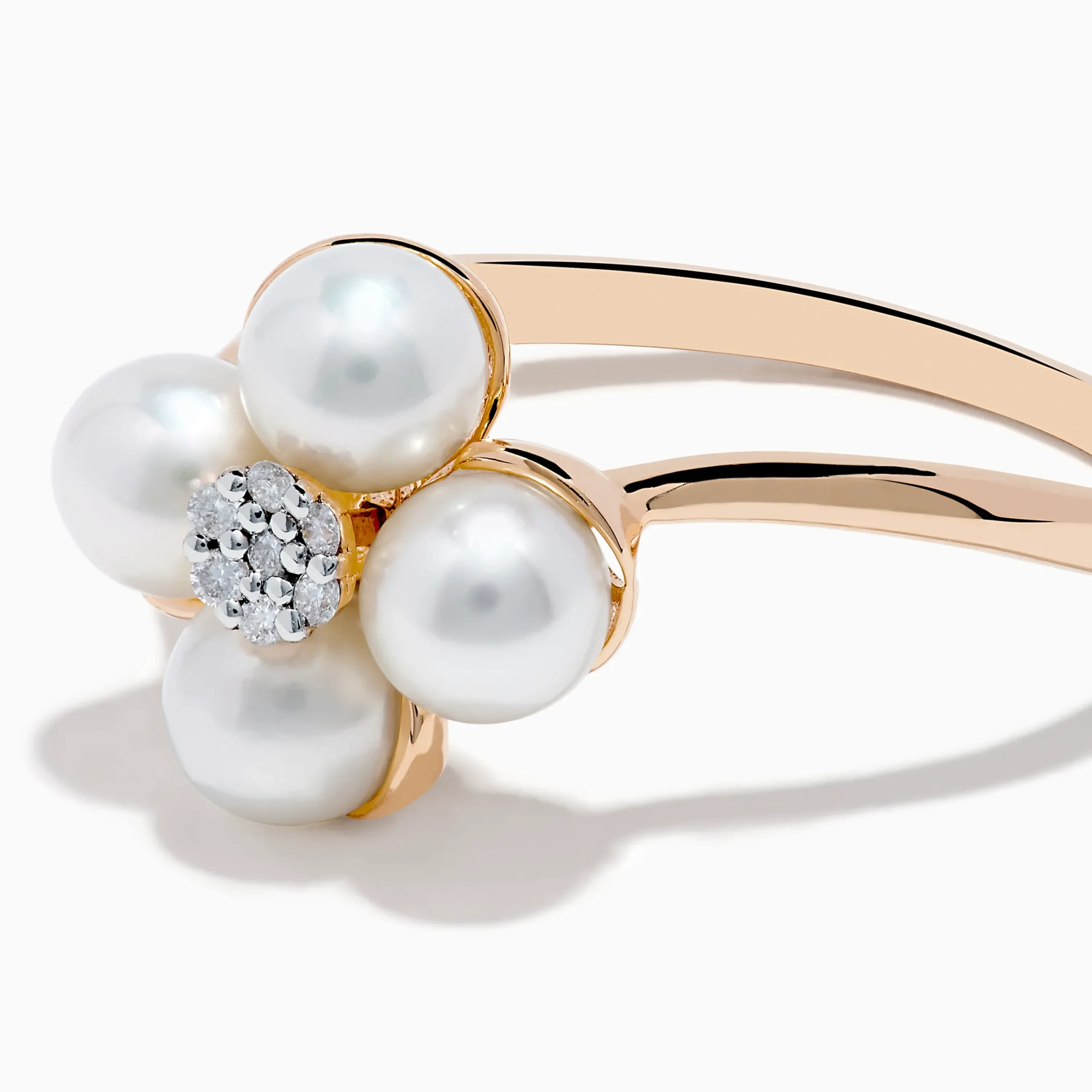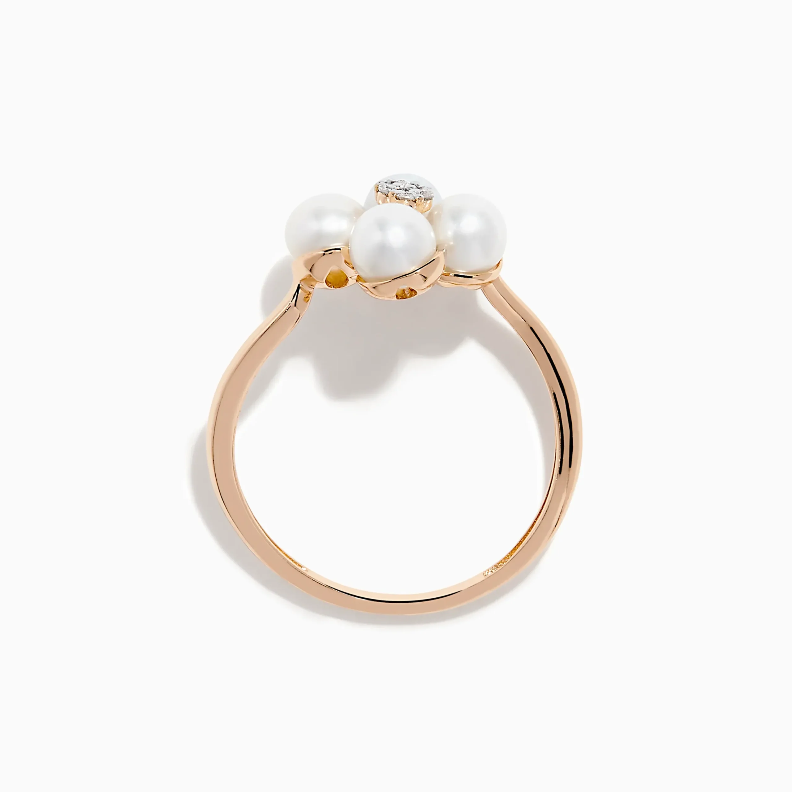14K Rose Gold Fresh Water Pearl and Diamond Flower Ring