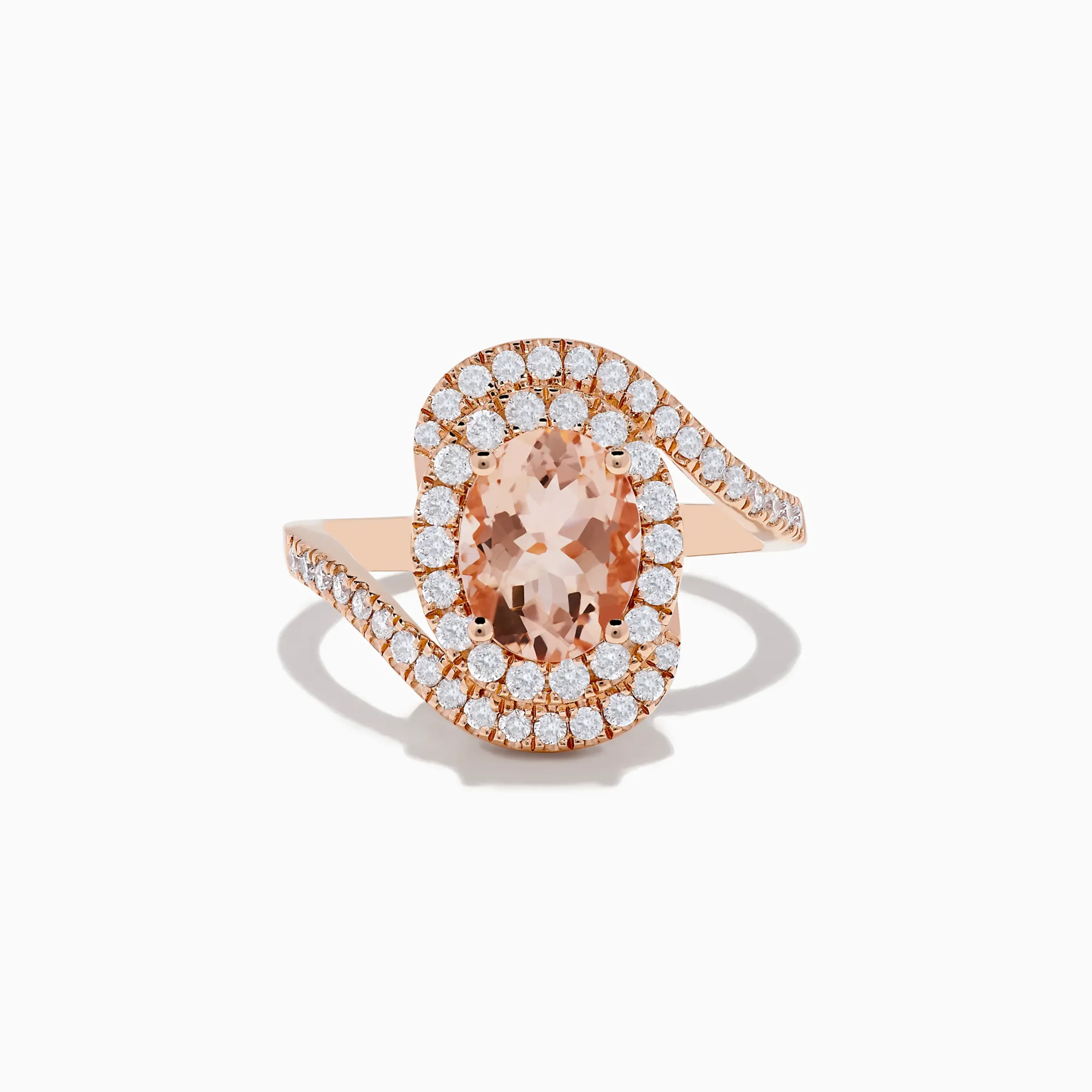 Metal:14K Gold Metal Color:RoseStone: Oval Morganite 1.65 Stone 2: Round Diamond 0.5714K Rose Gold Morganite and Diamond…