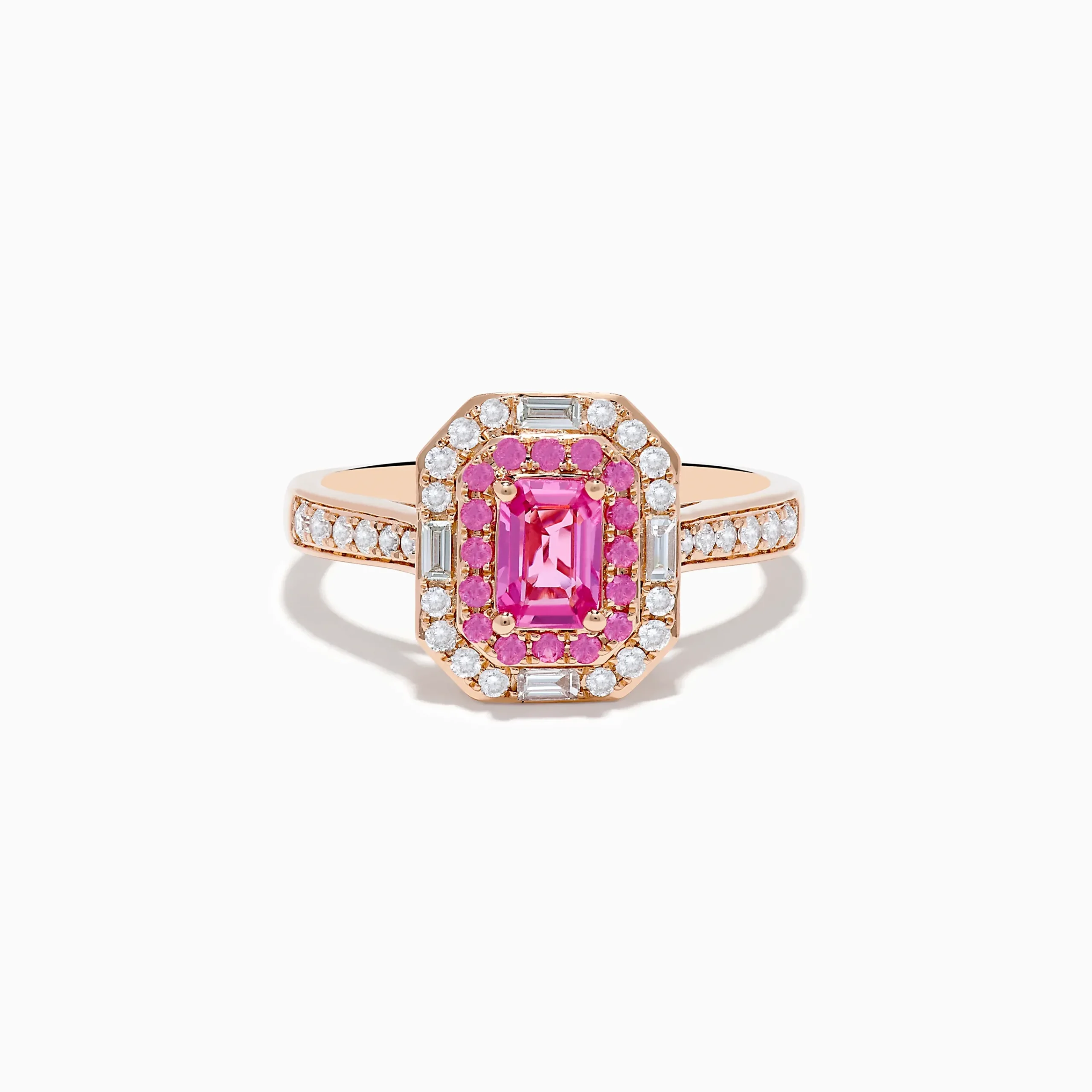 14K Rose Gold Pink Sapphire and Diamond Double Halo Ring