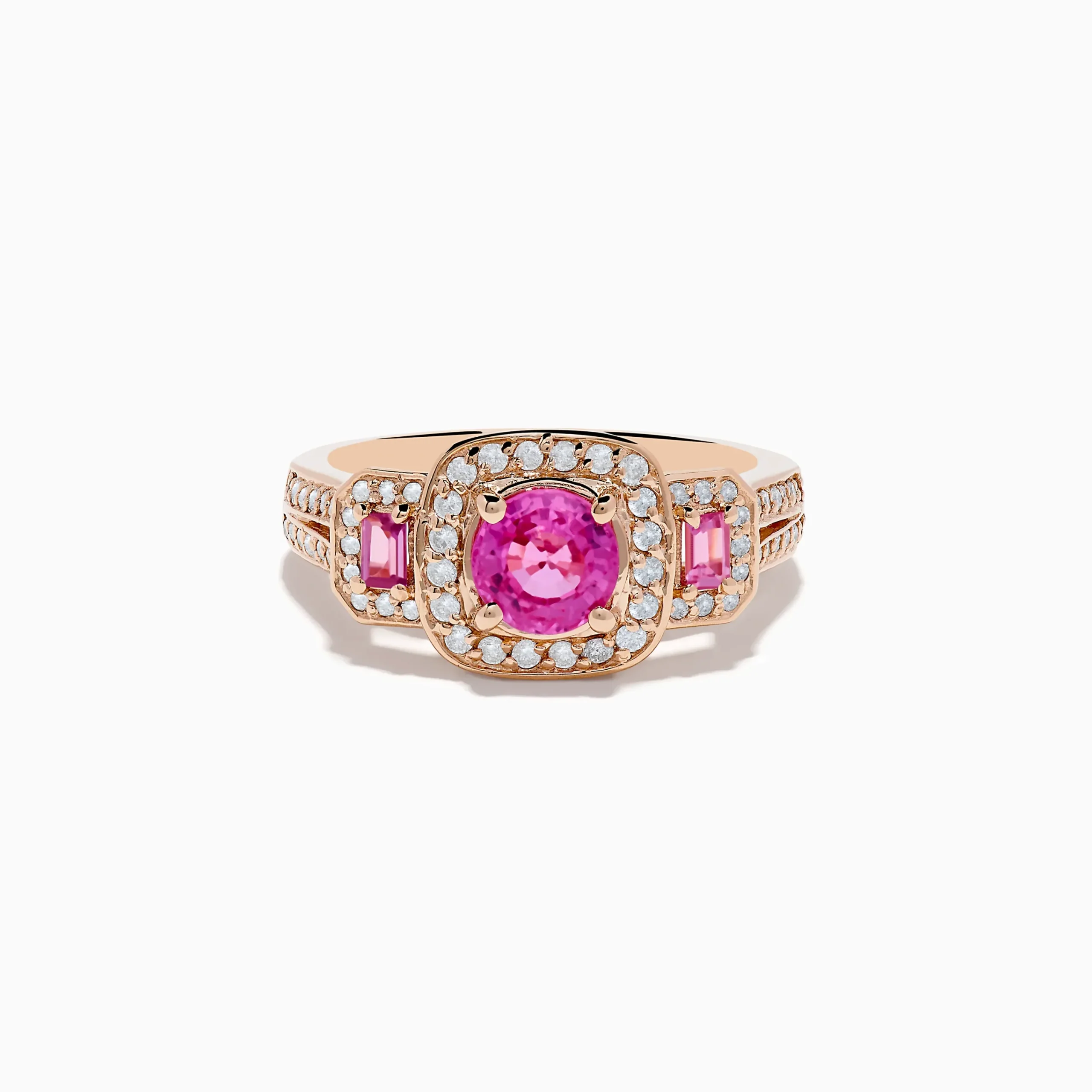 Metal:14K Gold Metal Color:RoseStone: Round Diamond 0.33 Stone 2: Multi Shape Pink Sapphire 1.2314K Rose Gold Pink Sapph…