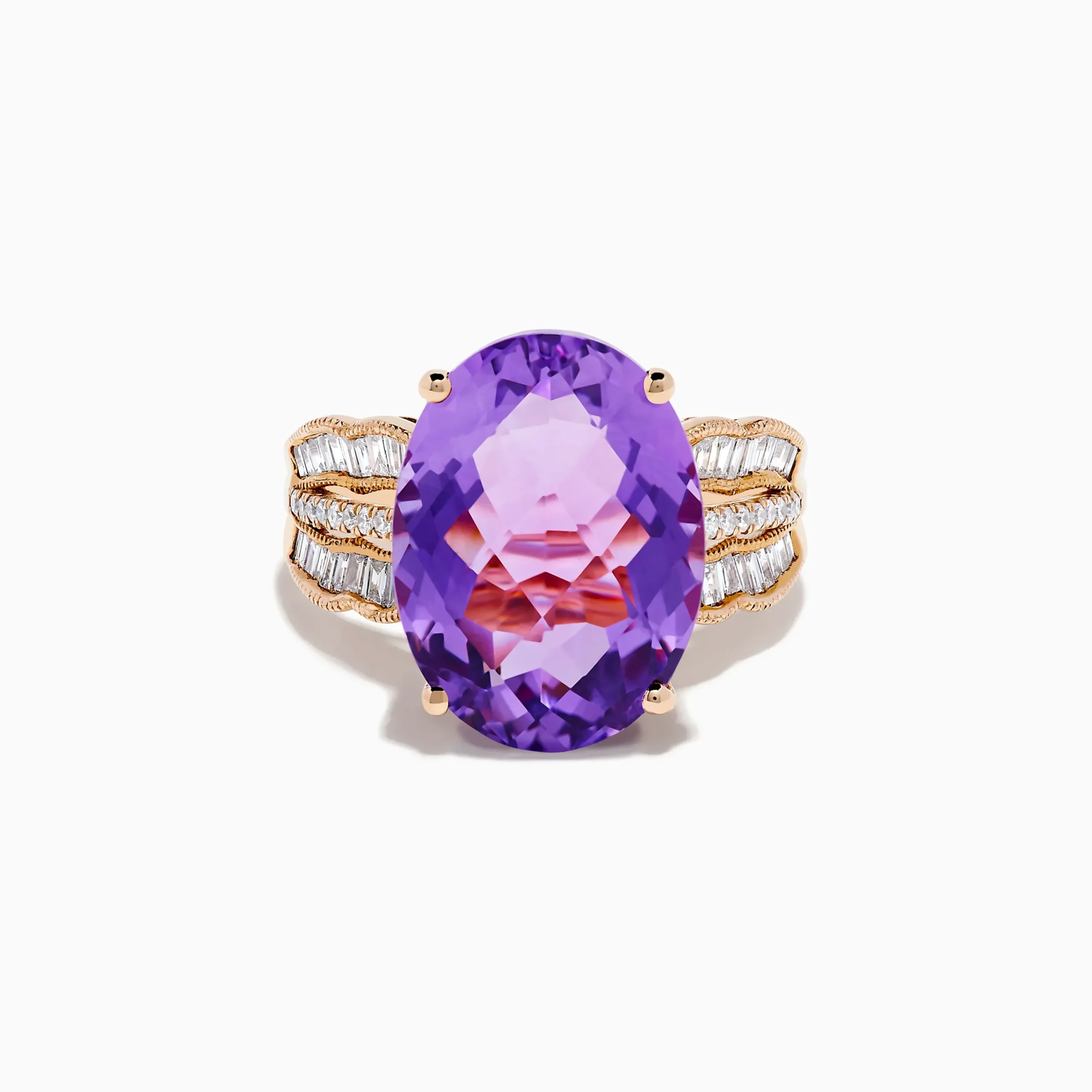 14K Rose Gold Purple Amethyst and Diamond Cocktail Ring