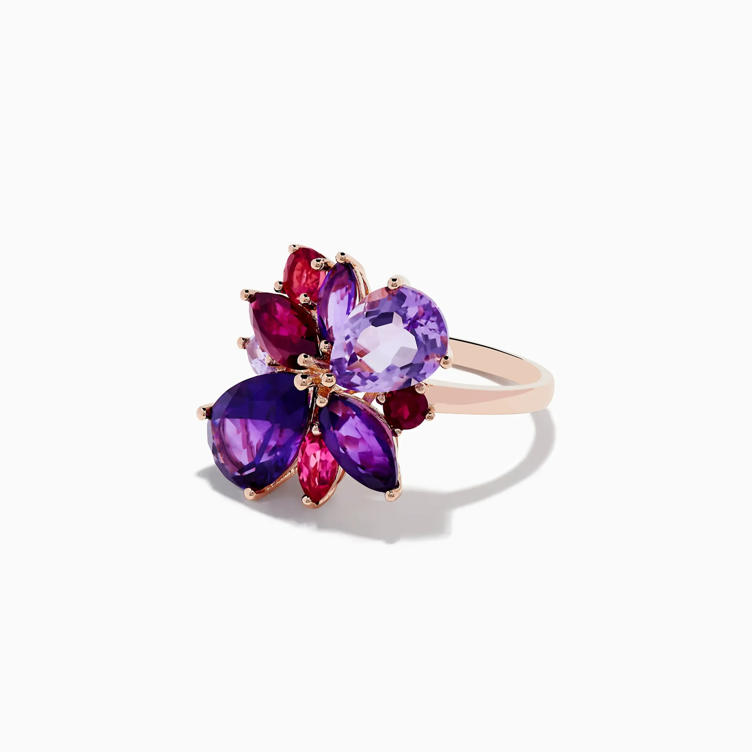 14K Rose Purple and Pink Amethyst, Rhodolite, and Pink Tourmaline Ring