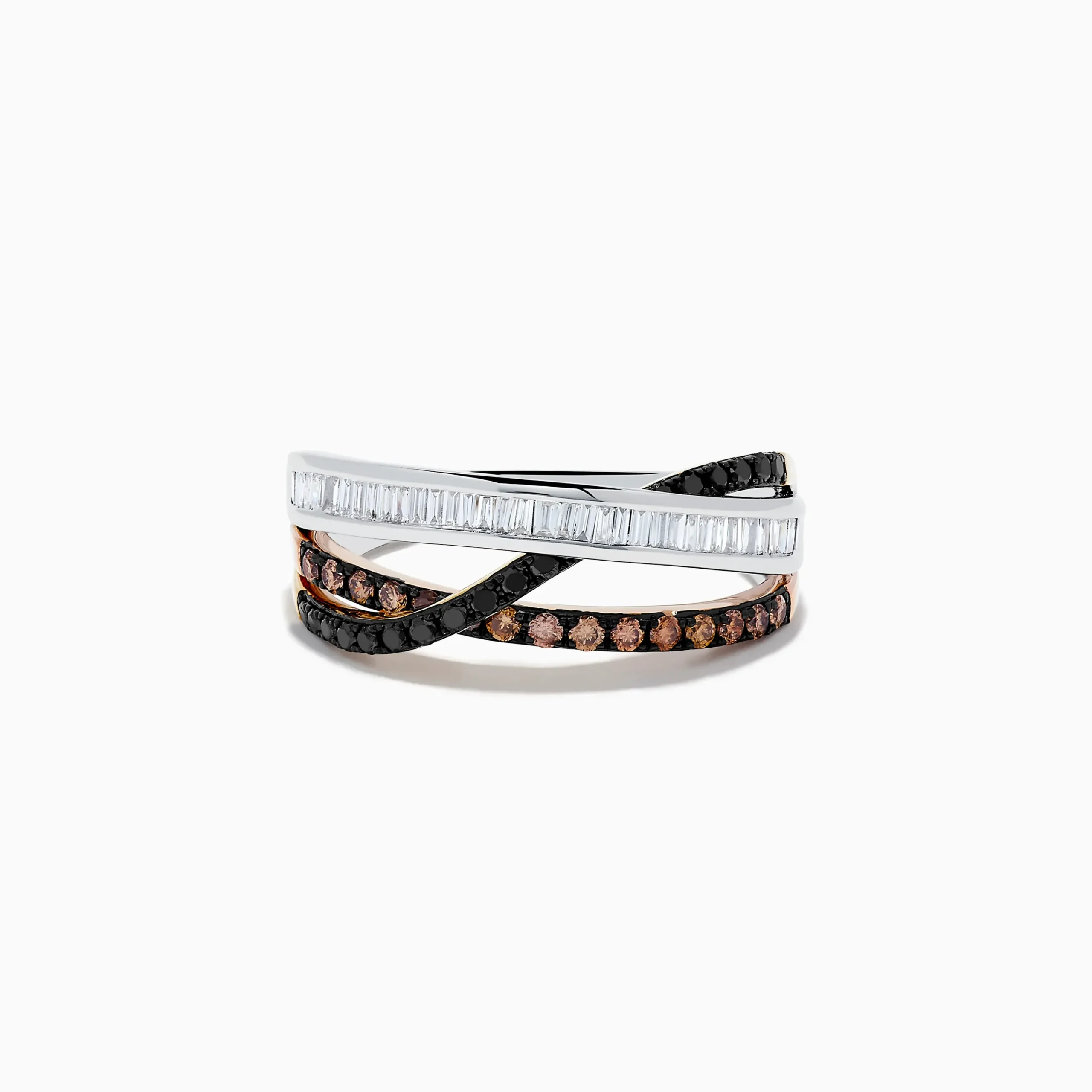 Effy Espresso 14K Three-Tone Gold Brown, Black and White Diamond Crossover Ring 0.63 TCW