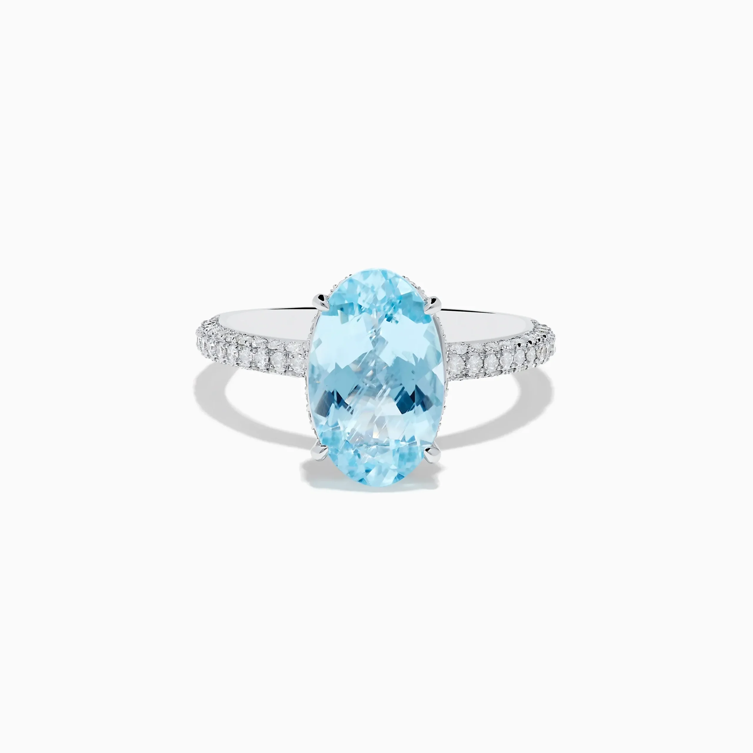 14K White Gold Aquamarine and Diamond Double Hidden Halo Ring