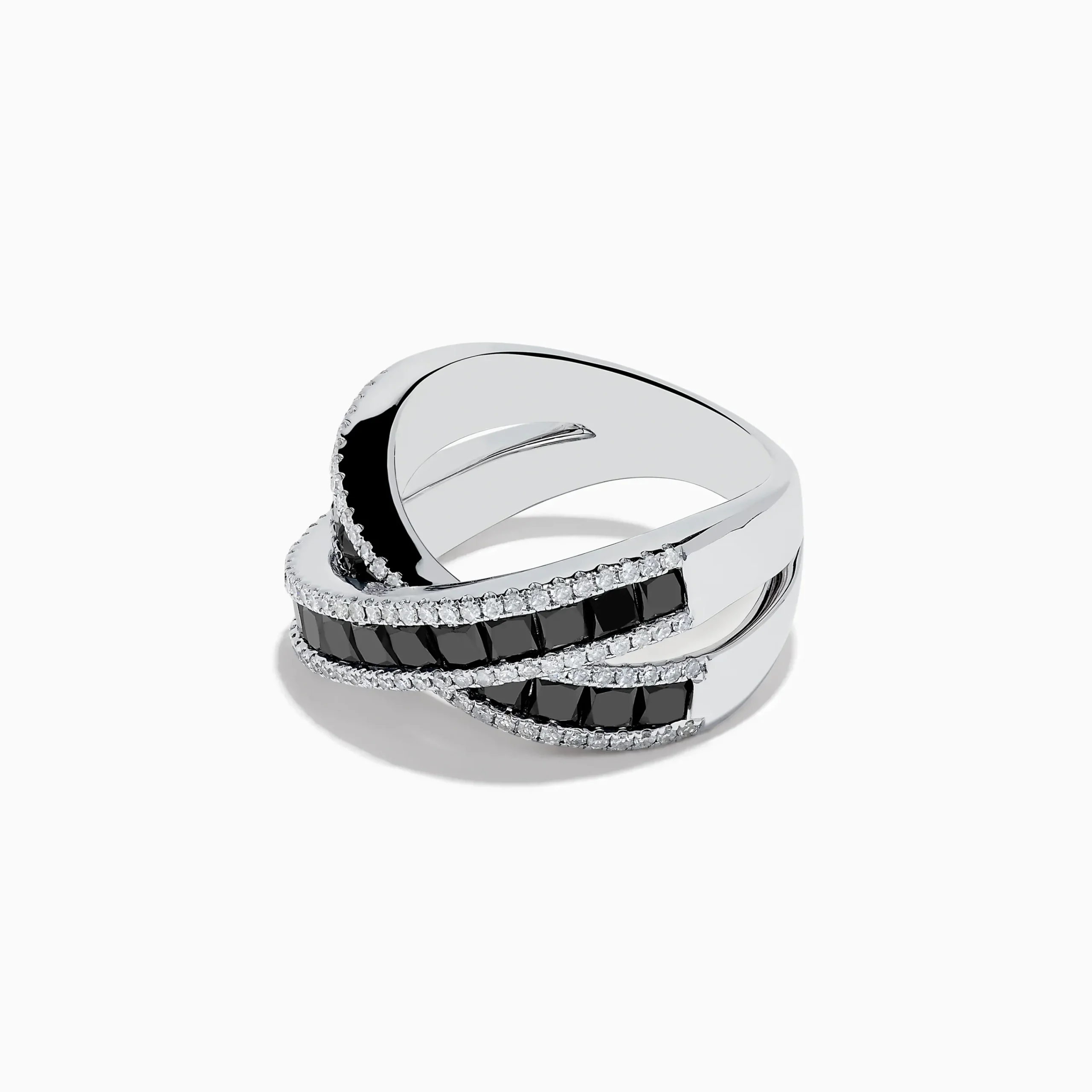 14K White Gold Black and White Diamond Crossover Ring