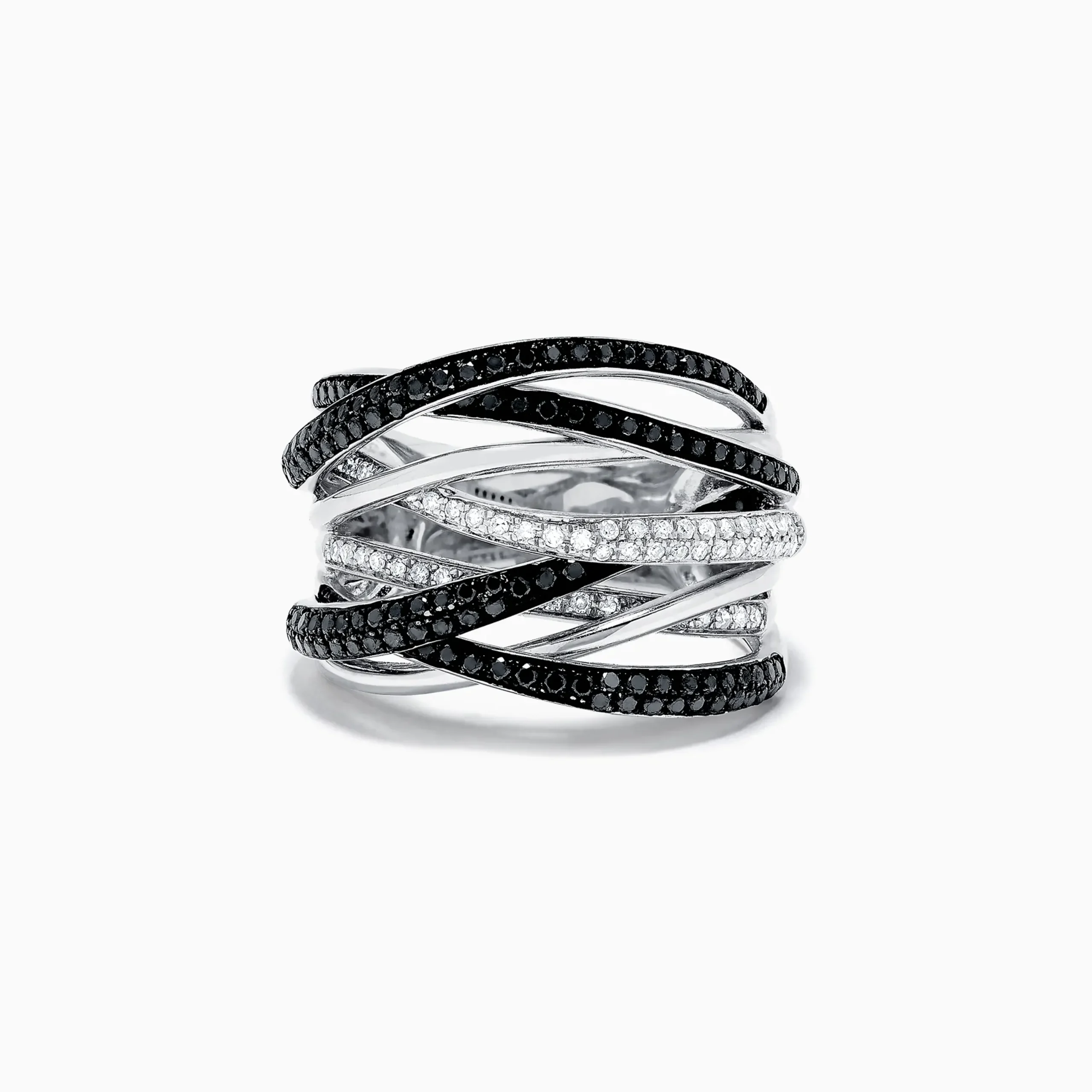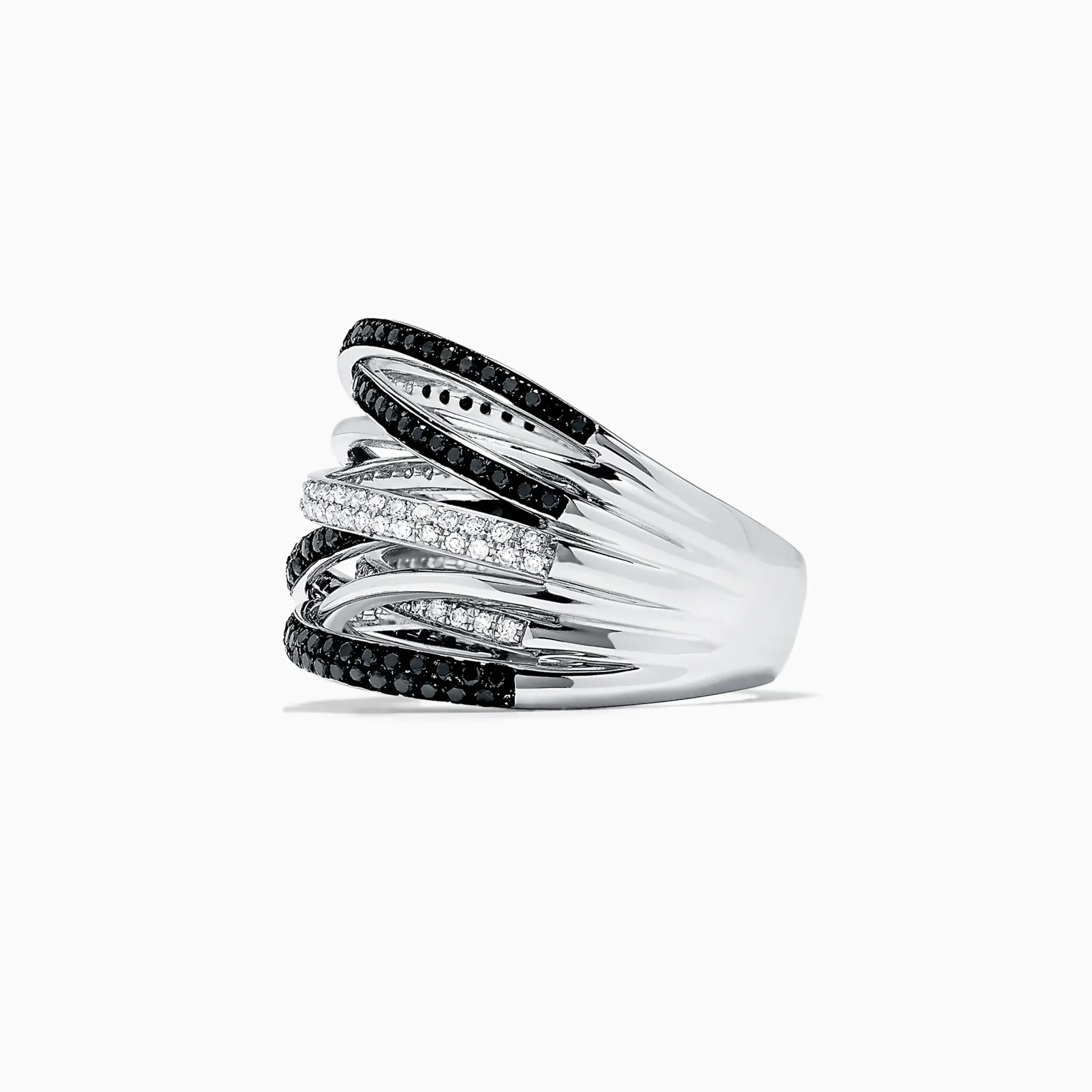 Effy 14K White Gold Black and White Diamond Ring, 0.74 TCW