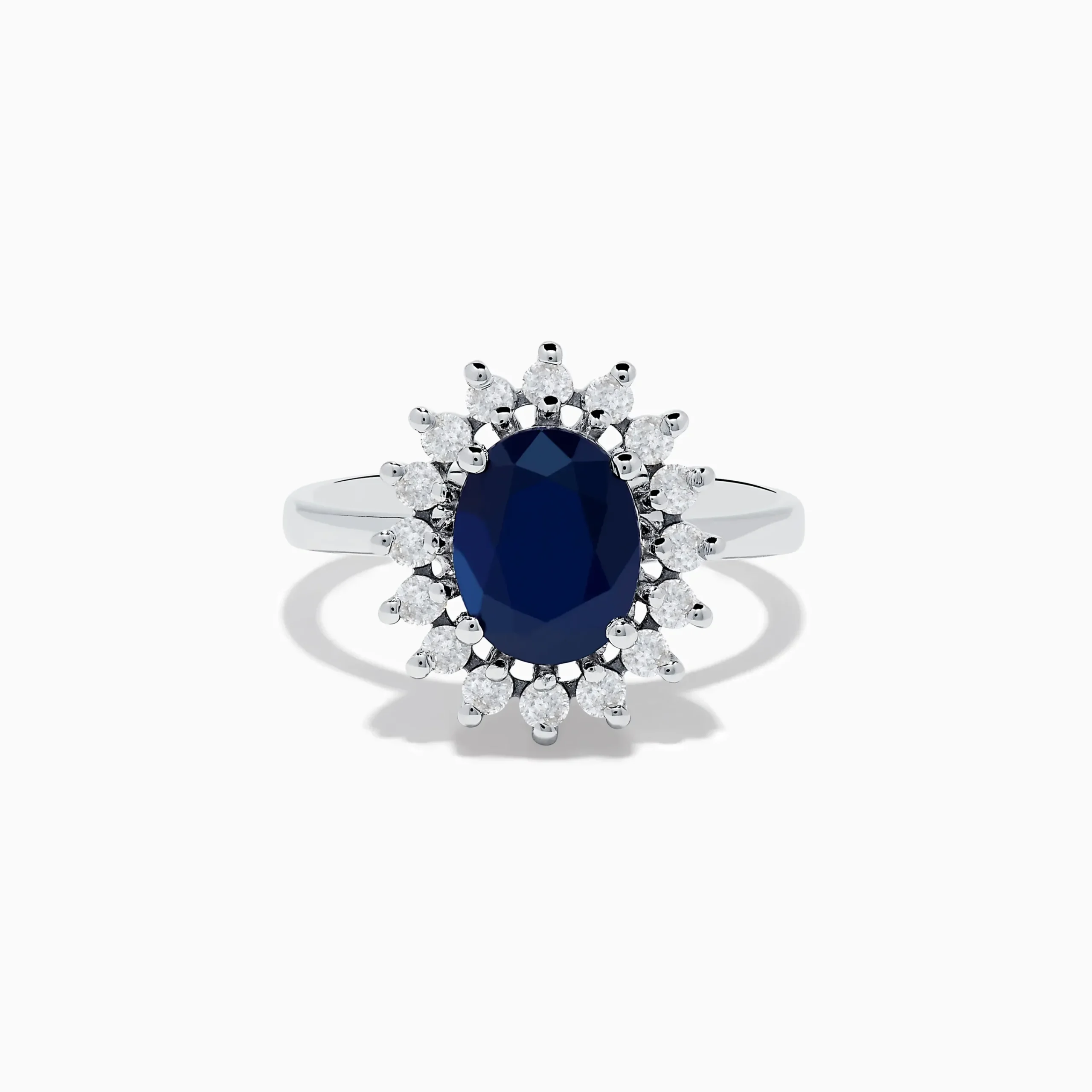 Metal:14K Gold Metal Color:WhiteStone: Oval Blue Sapphire 1.9 Stone 2: Round Diamond 0.39Effy14K White Gold Blue Sapphir…