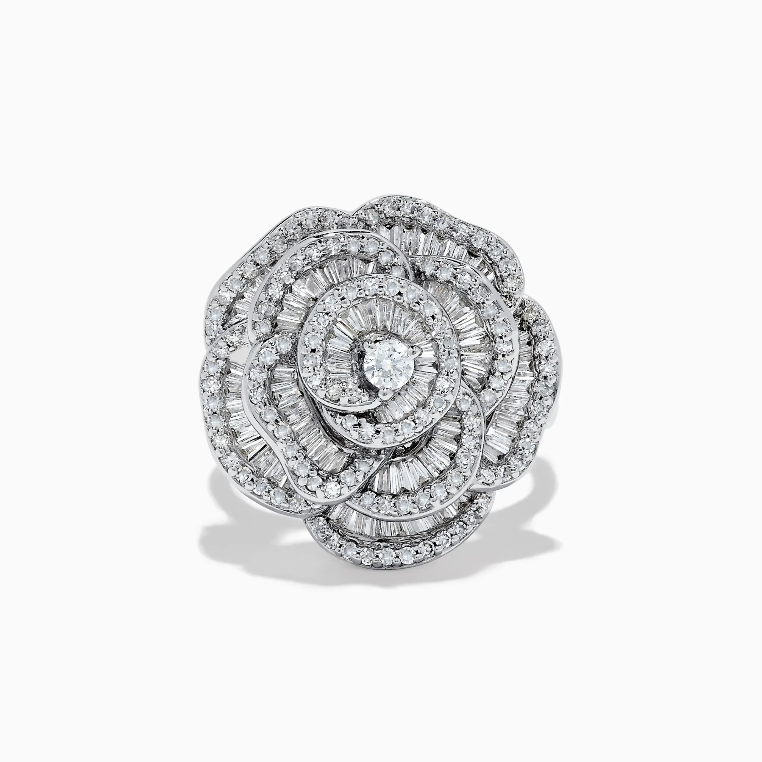 Metal:14K Gold Metal Color:WhiteStone: Multi Shape Diamond 1.32Effy 14K White Gold Diamond Flower Ring