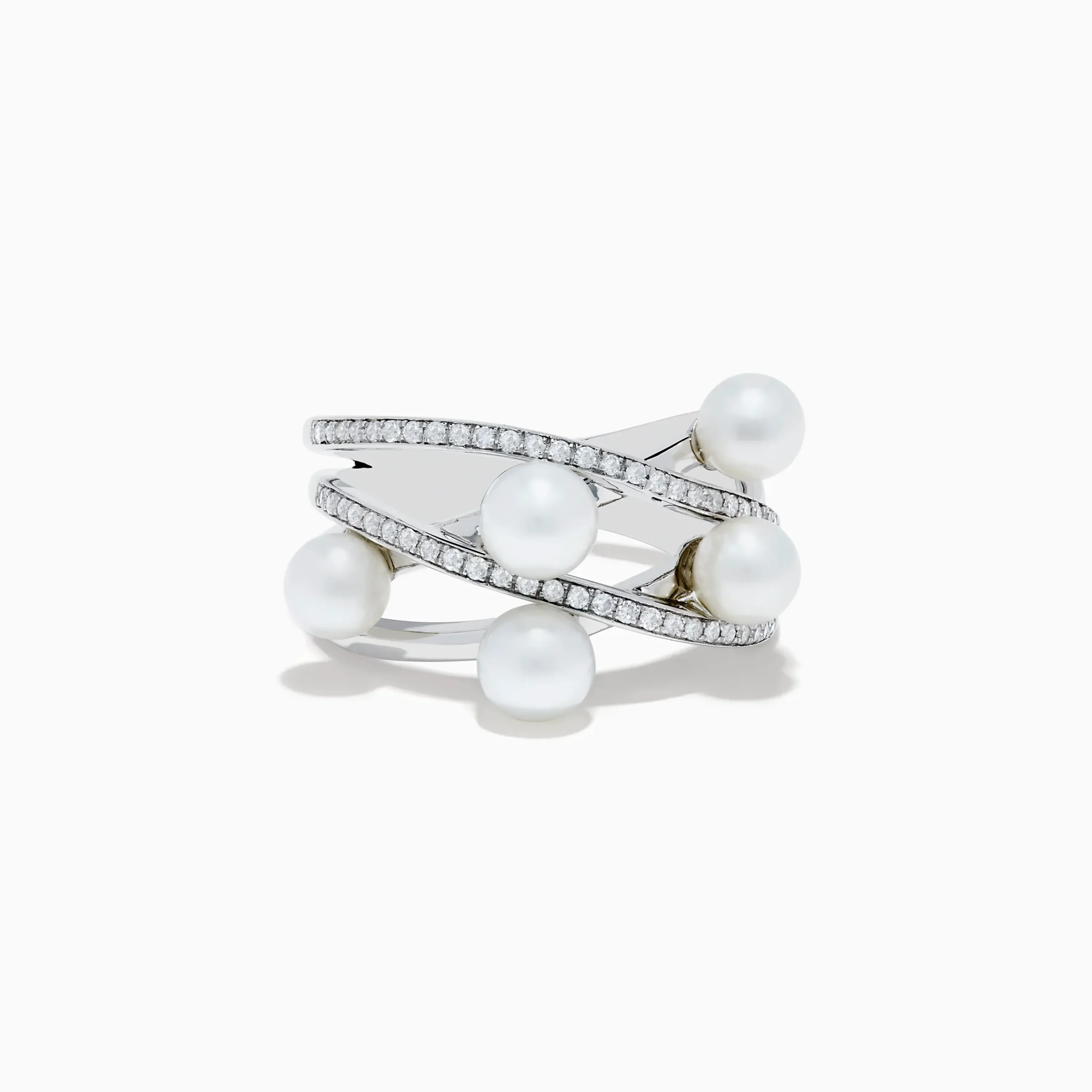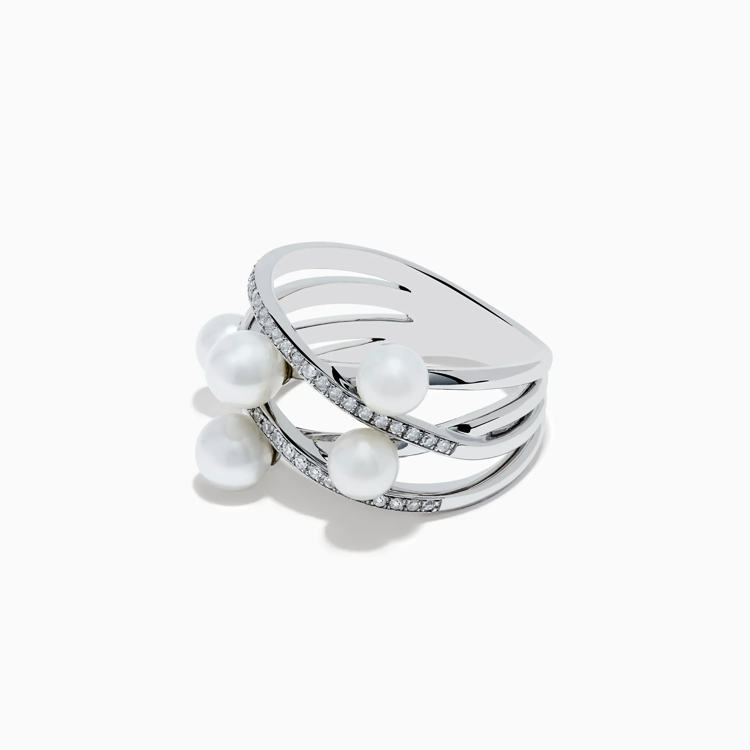 14K White Gold Fresh Water Pearl and Diamond Ring
