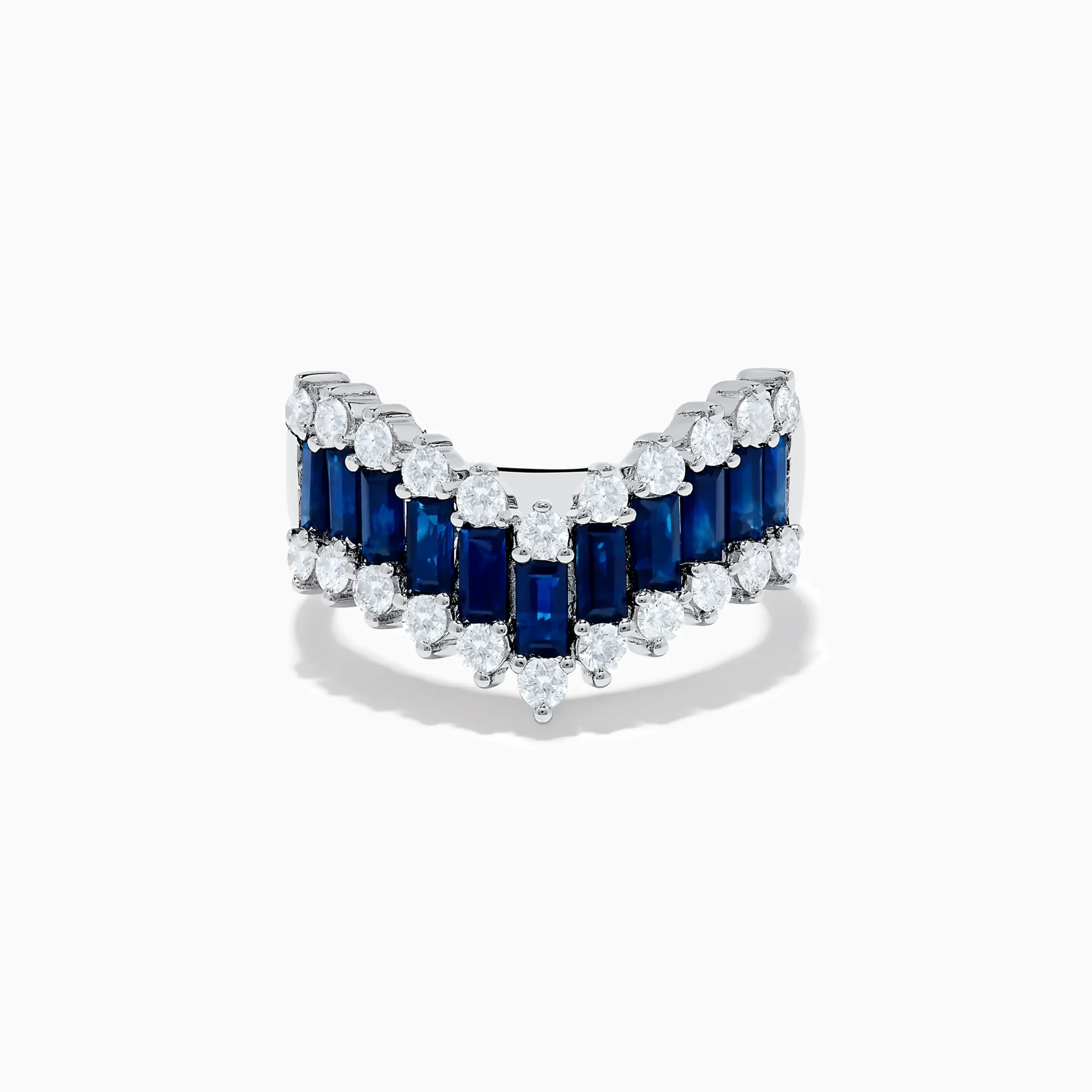 14K White Gold Sapphire and Diamond Contoured Band Ring
