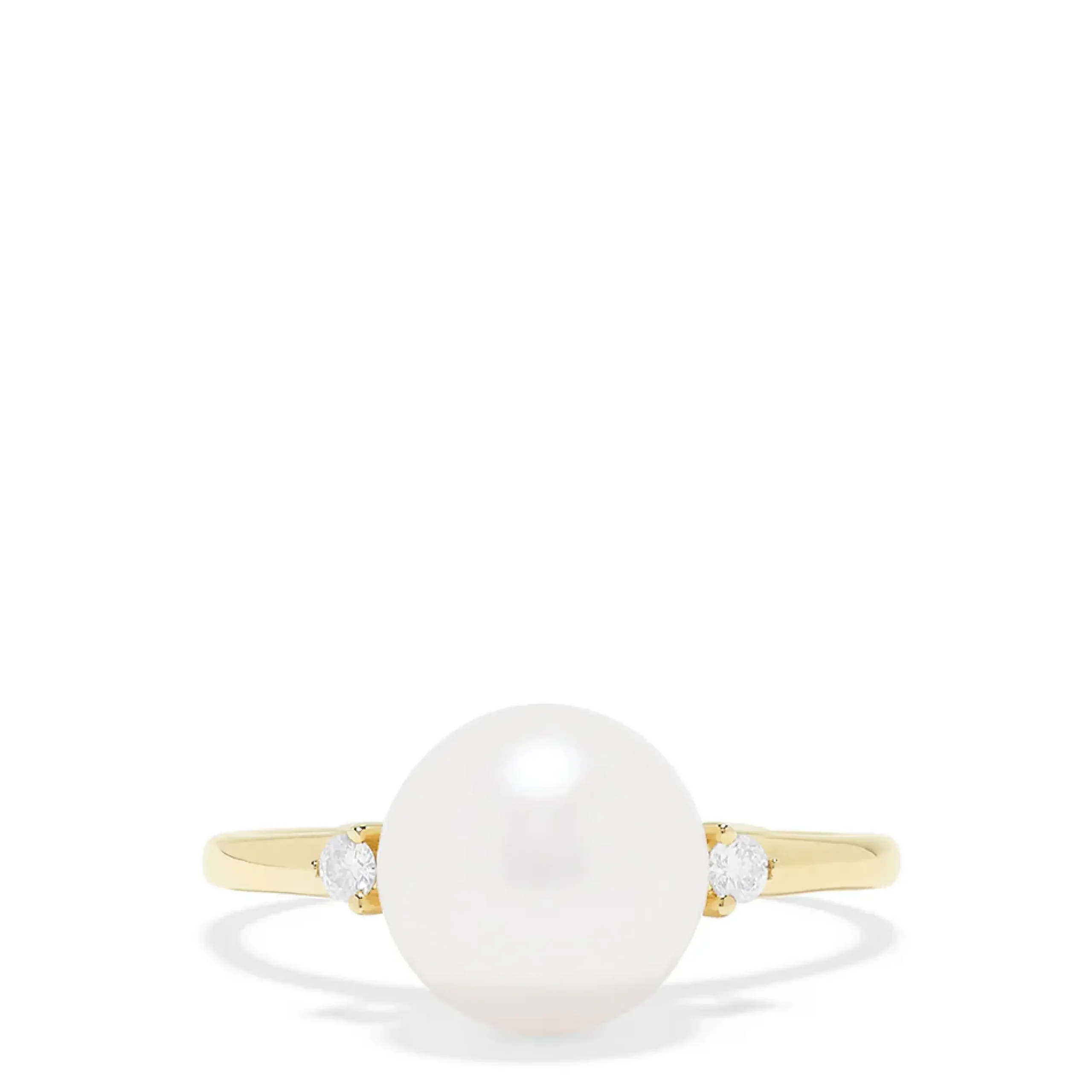 Effy 14K Yellow Gold Cultured Pearl and Diamond Accented Ring, 0.05 TCW