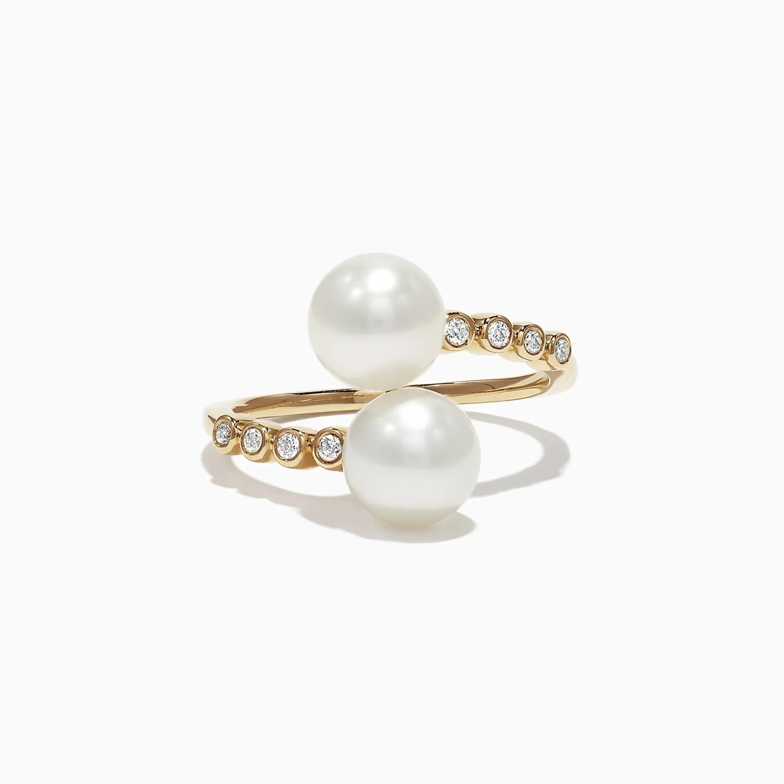 Effy 14K Yellow Gold Diamond and Fresh Water Pearl Ring, 0.09 TCW