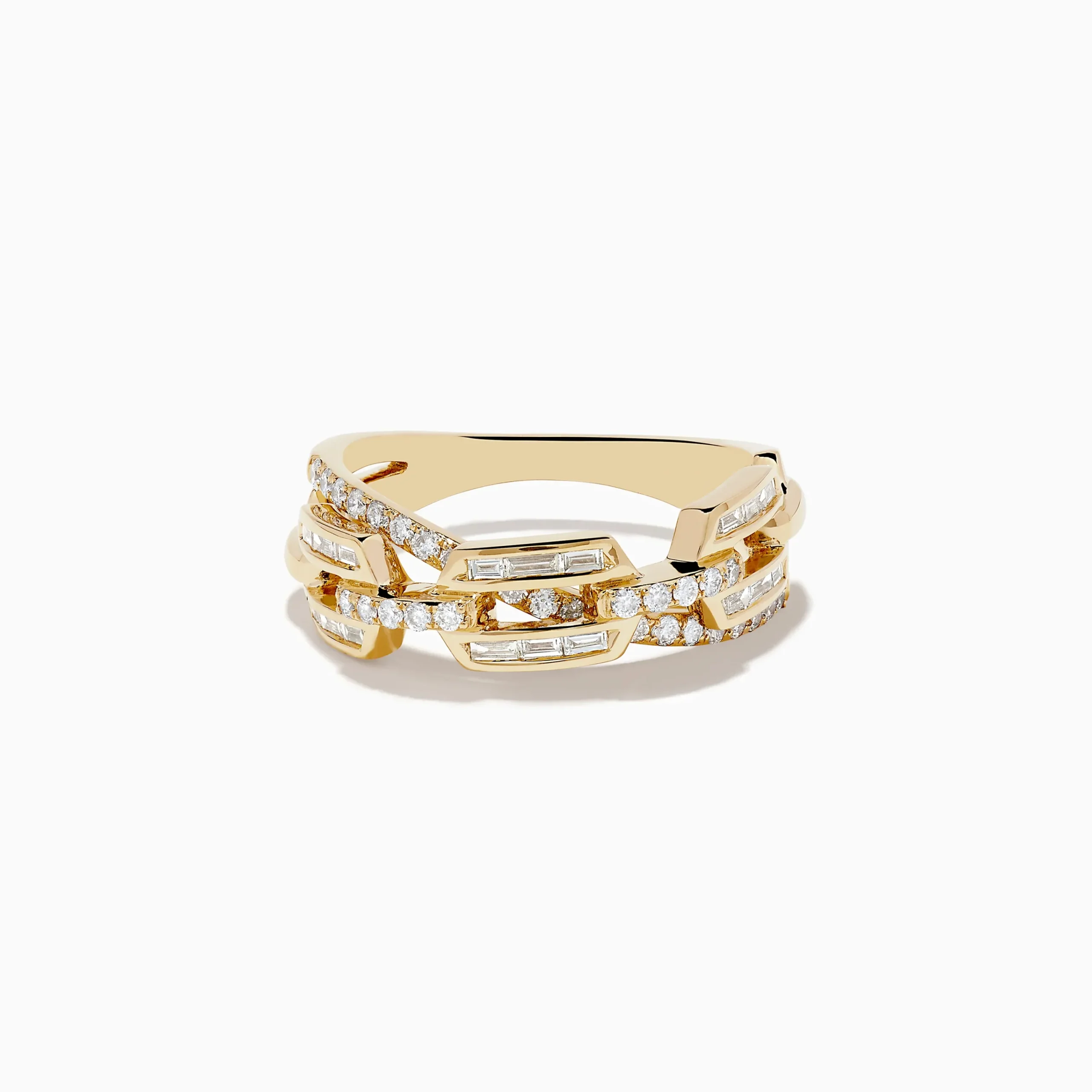 Metal:14K Gold Metal Color:YellowStone: Multi Shape Diamond 0.4614K Yellow Gold Diamond Interlocking Crossover Ring 0.46…