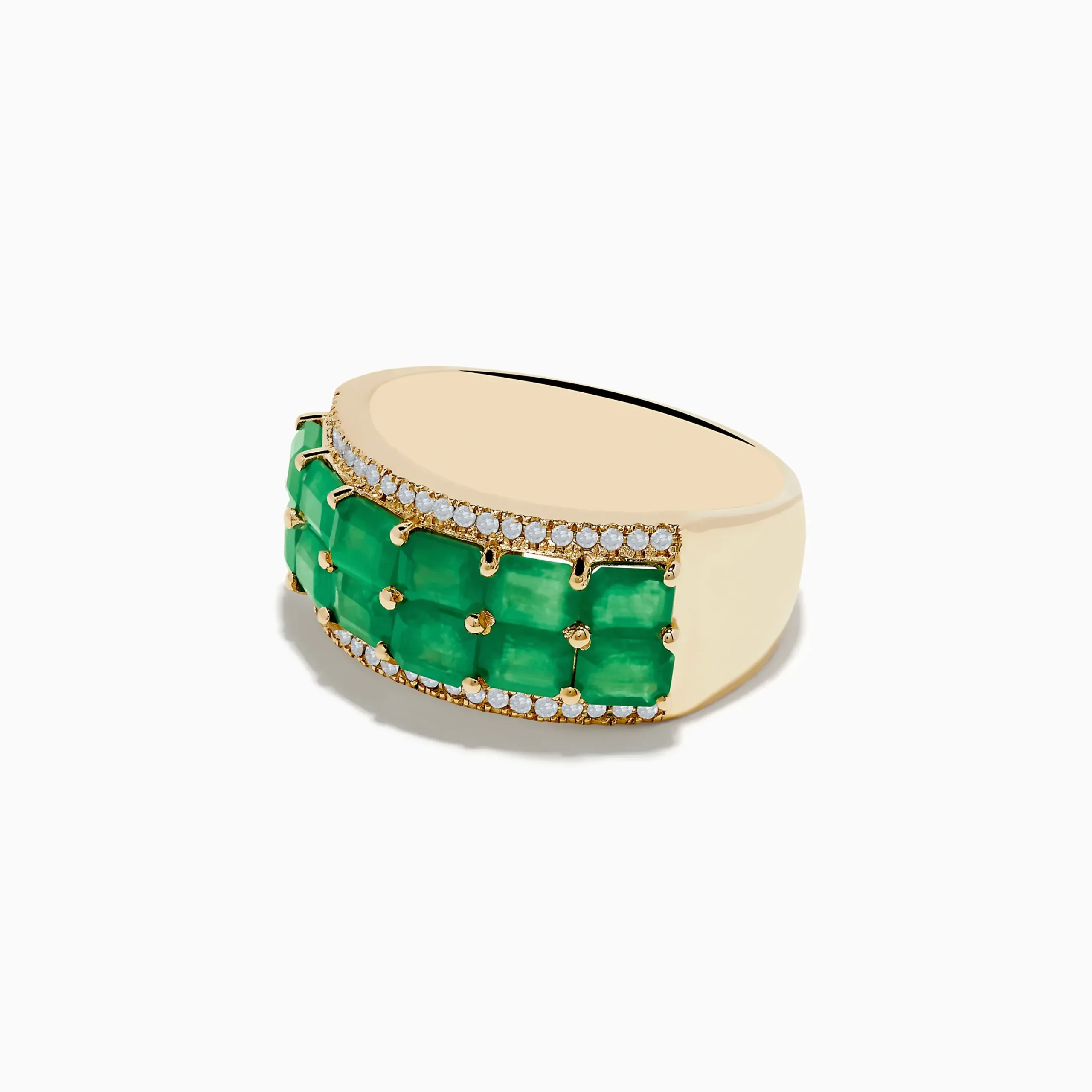 14K Yellow Gold Emerald and Diamond Band Ring