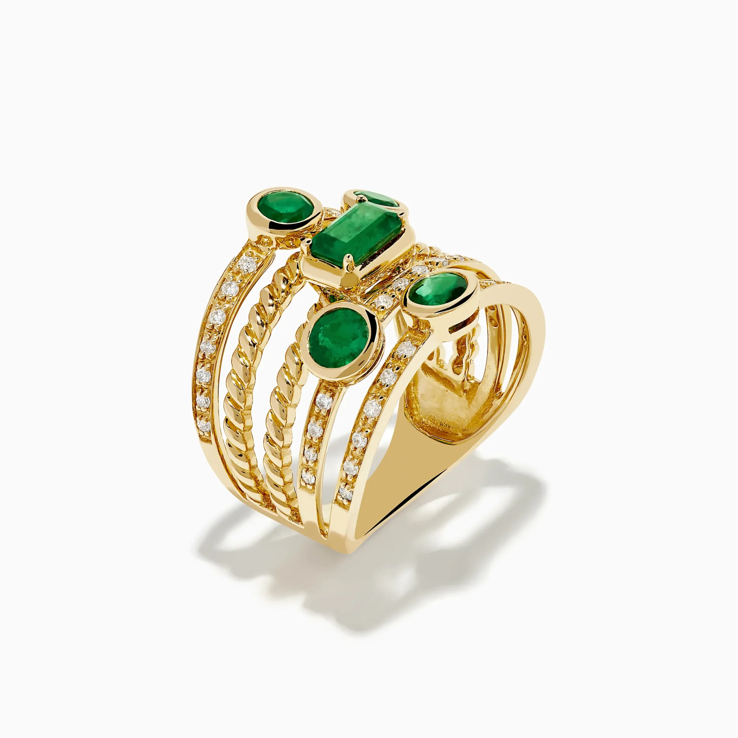 14K Yellow Gold Emerald and Diamond Statement Ring