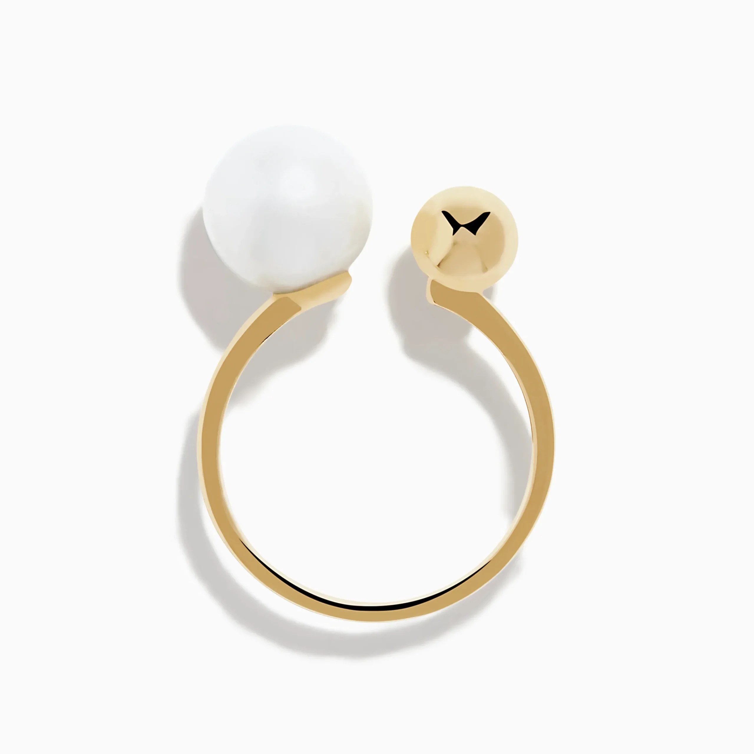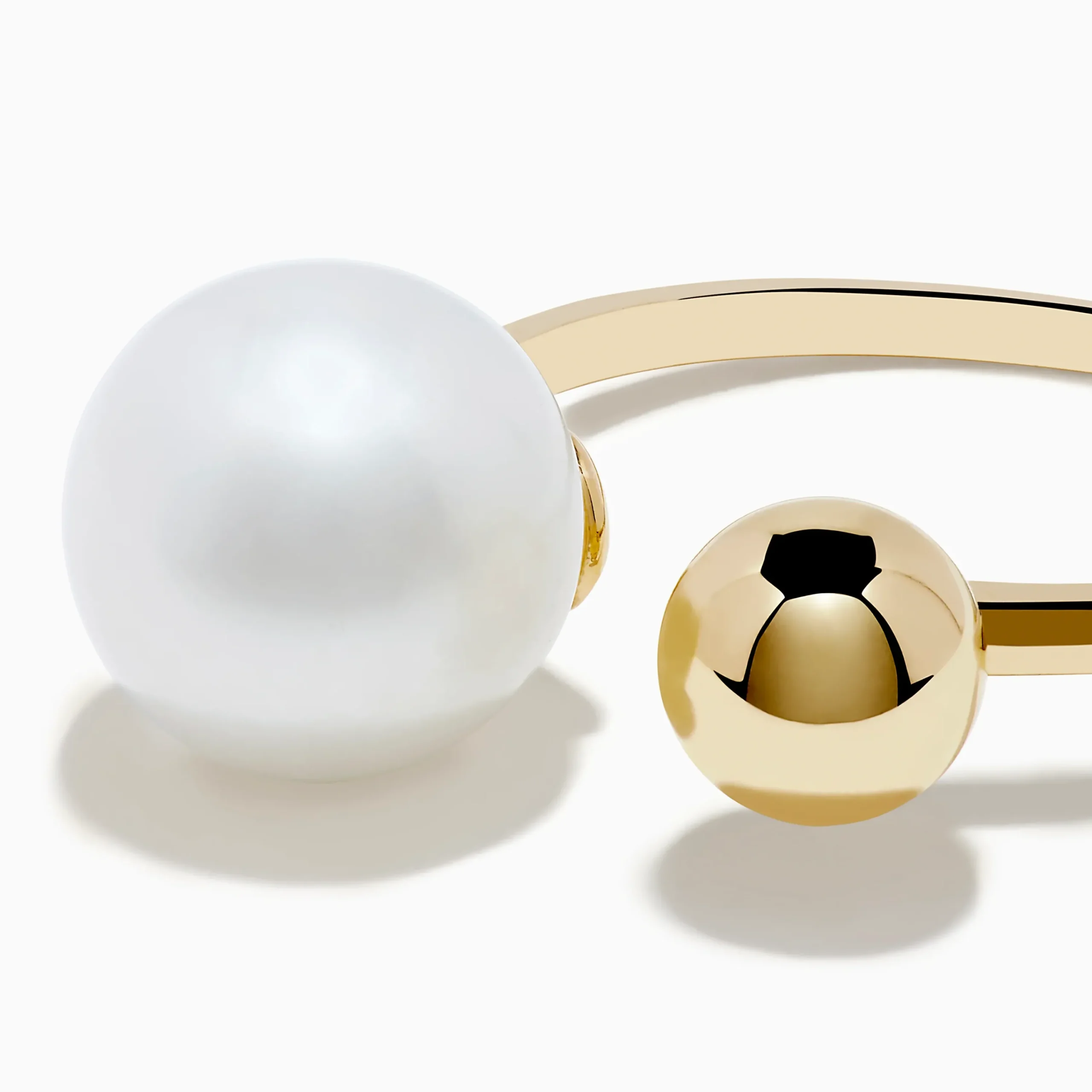 14K Yellow Gold Fresh Water Pearl and Bead Open Ring