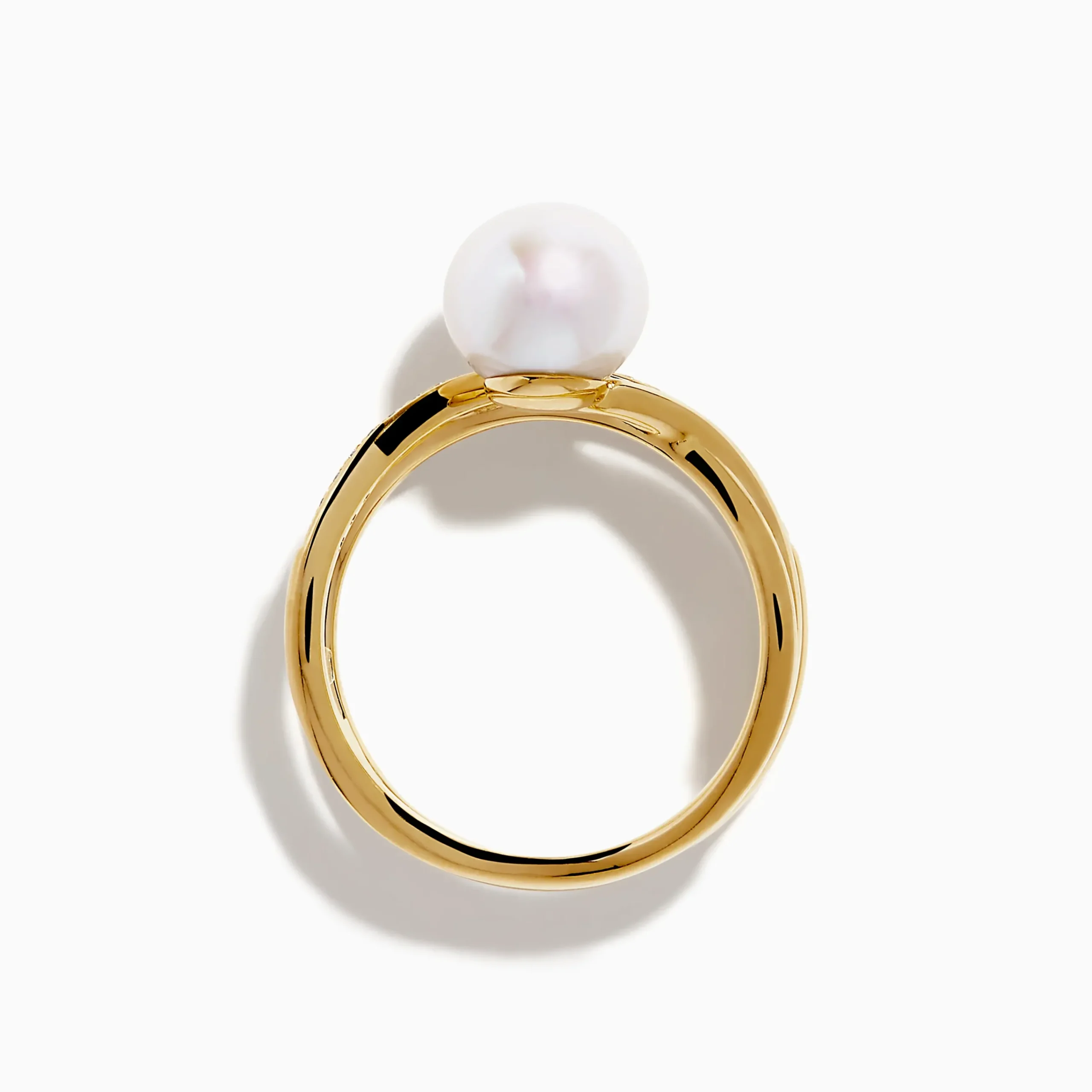 14K Yellow Gold Fresh Water Pearl and Diamond Crossover Ring