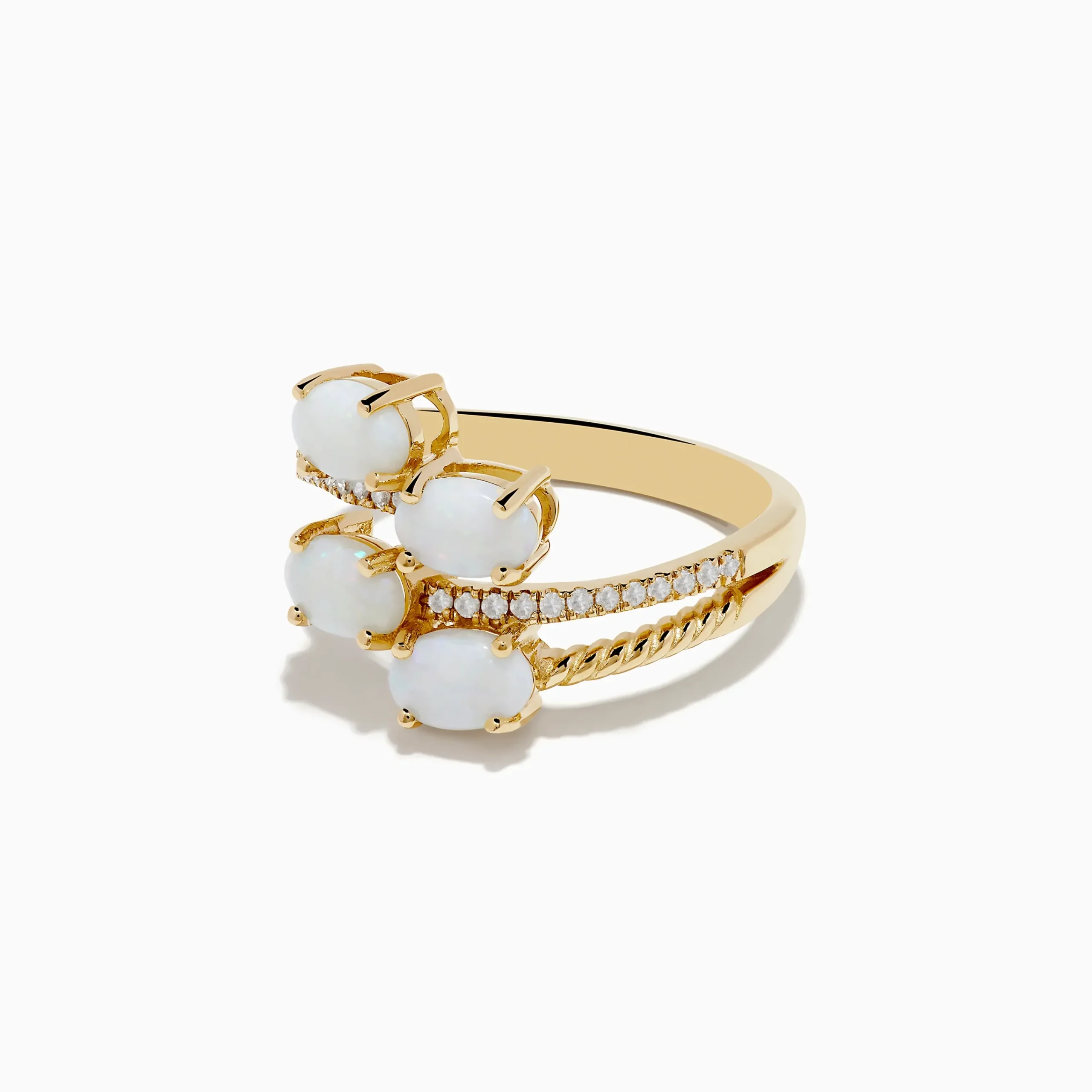 14K Yellow Gold Opal and Diamond Bypass Ring