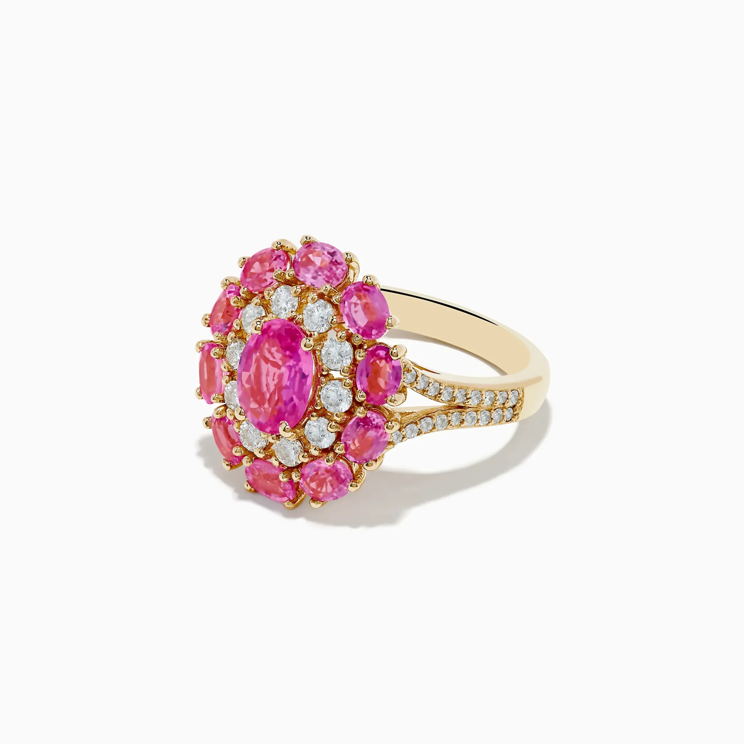 14K Yellow Gold Pink Sapphire and Diamond Ring