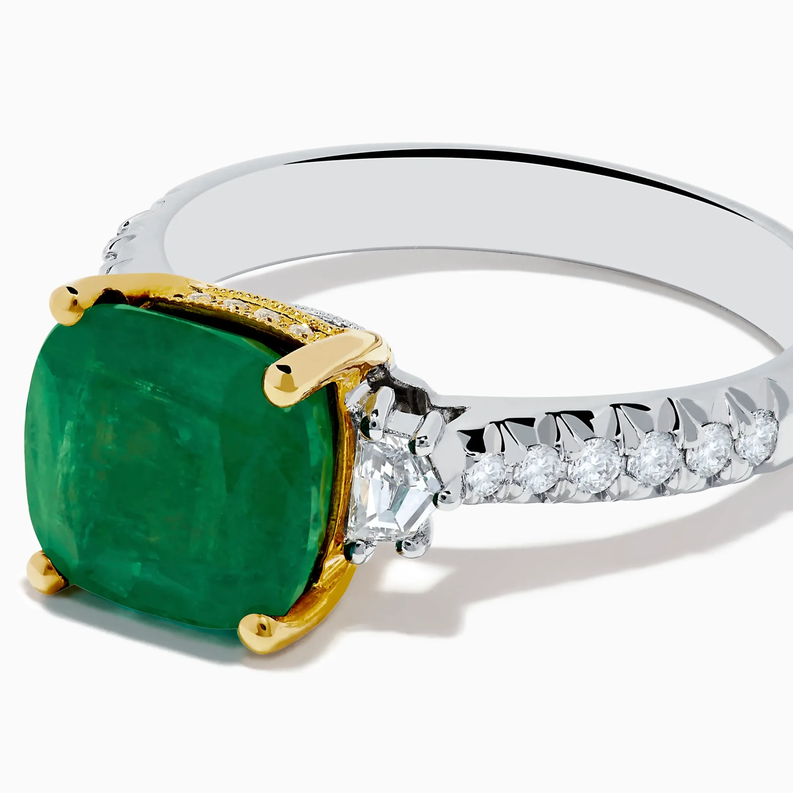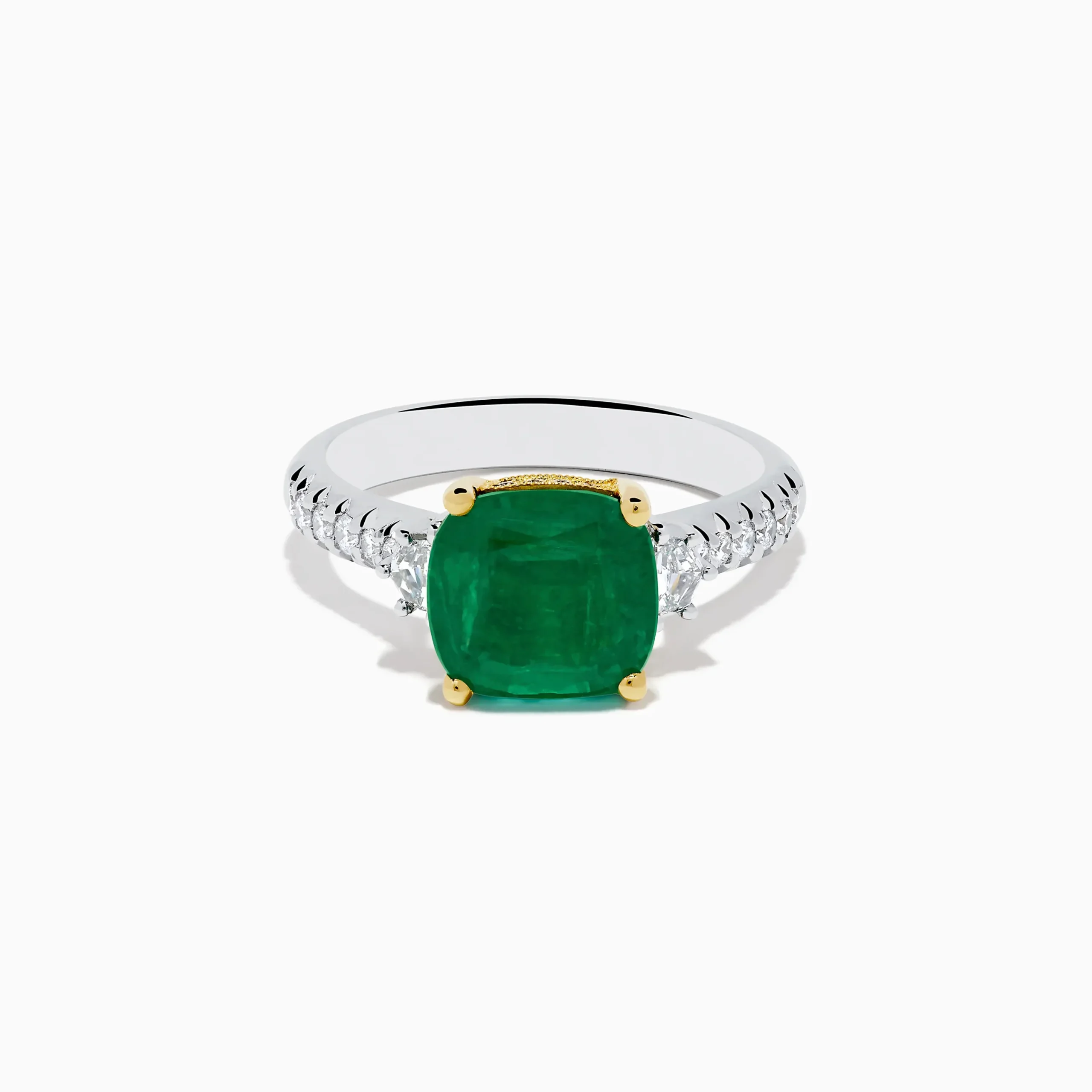 Metal:18K Gold Metal Color:Yellow and WhiteStone: Cushion Emerald 2.82 Stone 2: Multi Shape Diamond 0.6318K Two Tone Gol…