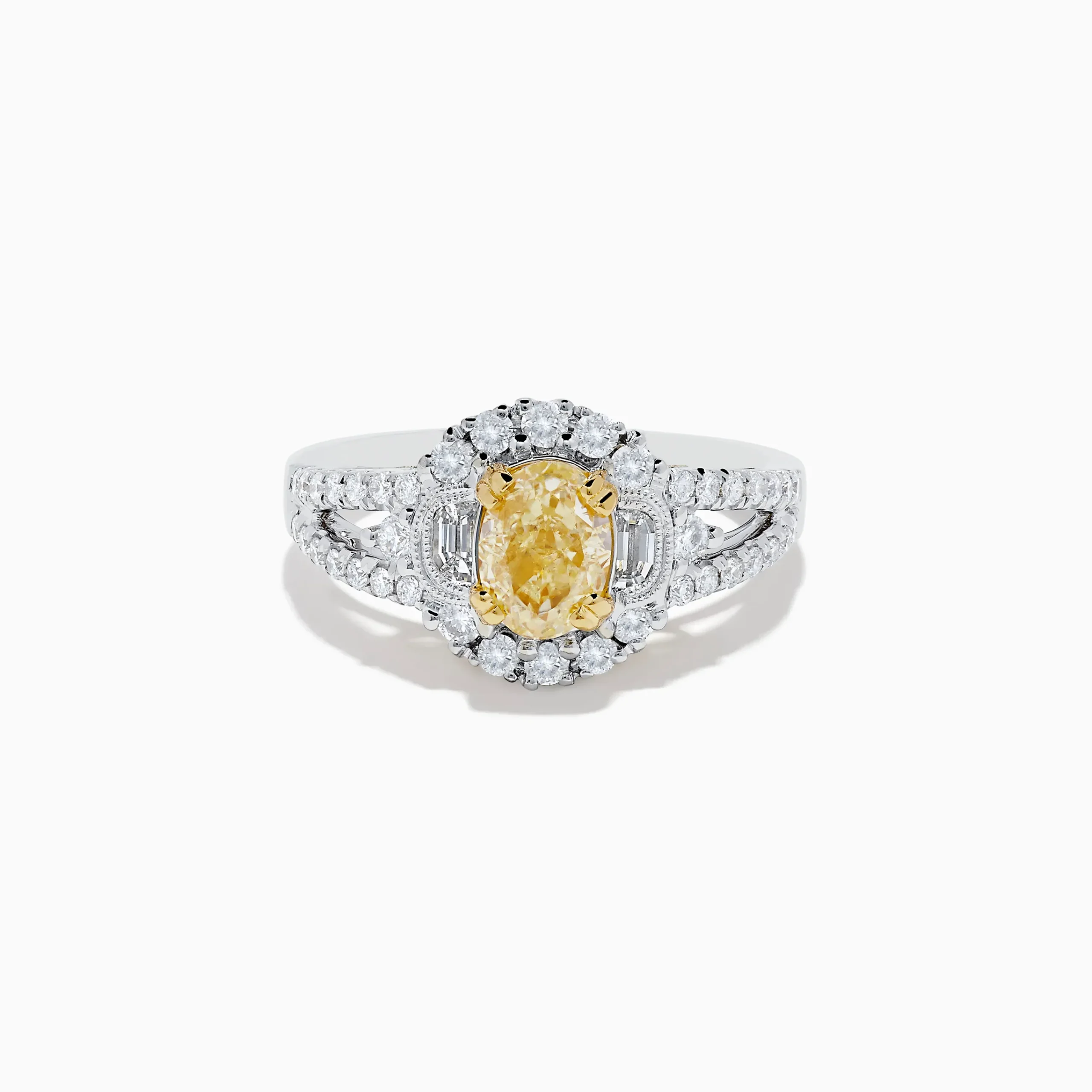 Effy 18K Two-Tone Gold Yellow Diamond Oval Halo Ring 1.63 TCW