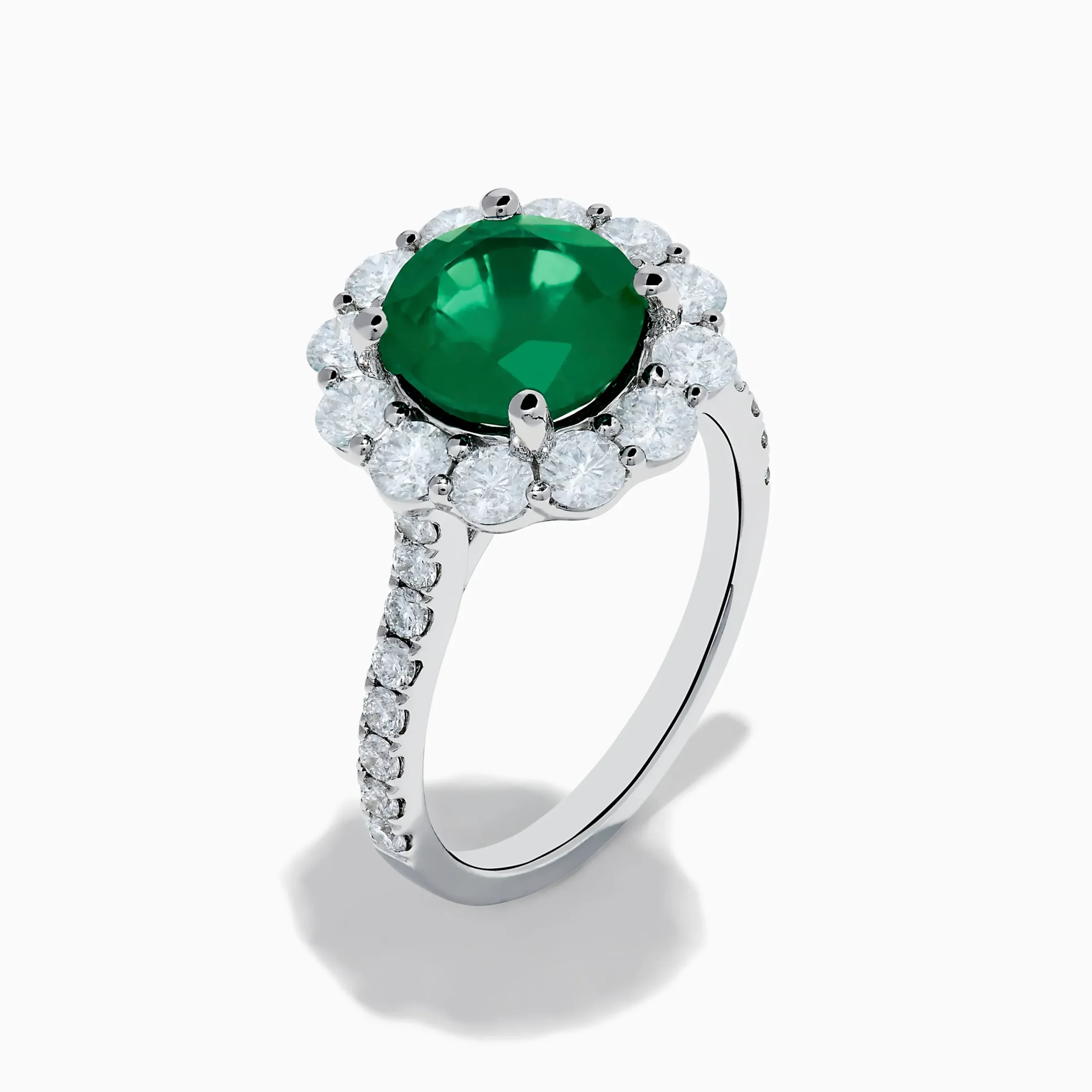 18K White Gold Emerald and Diamond Halo Ring