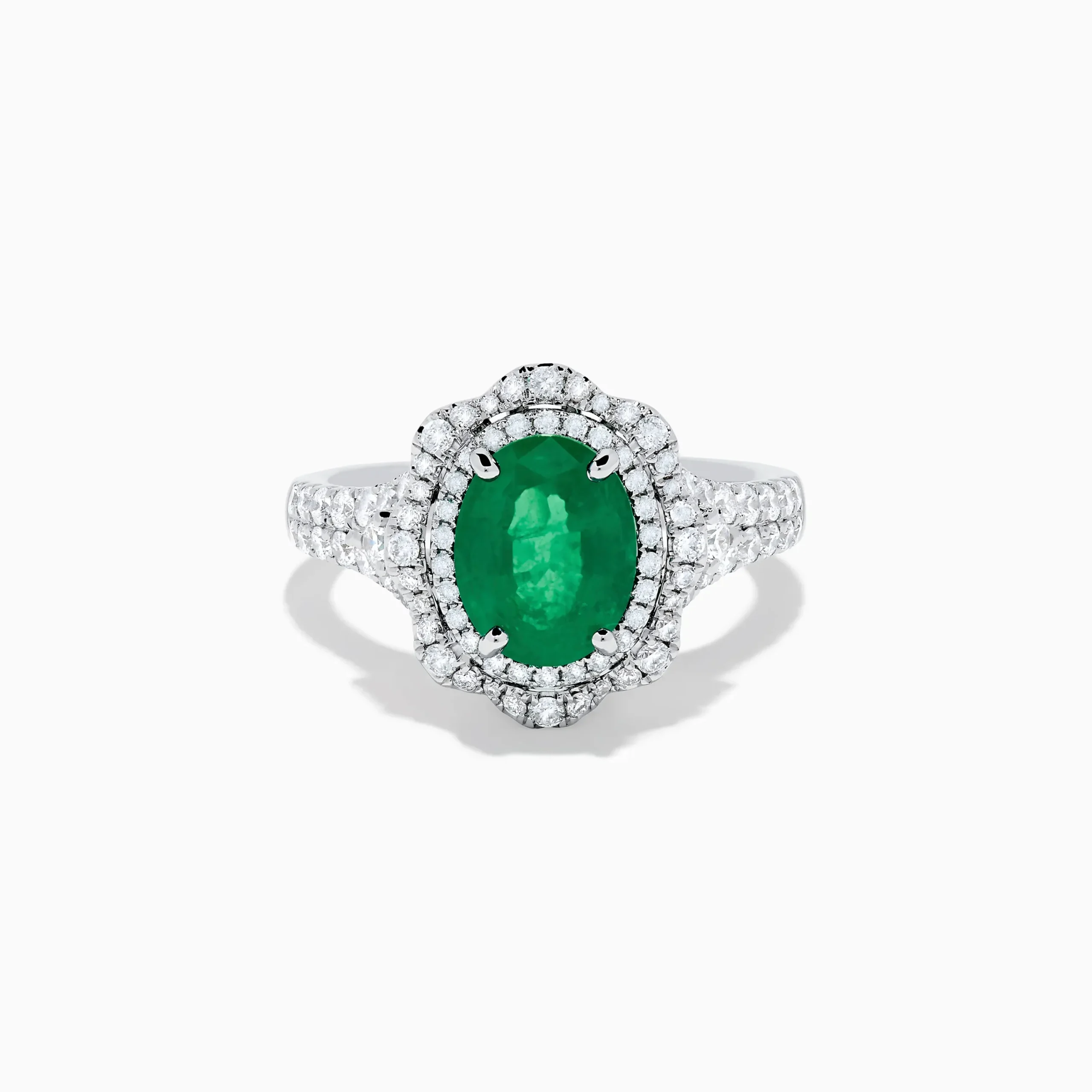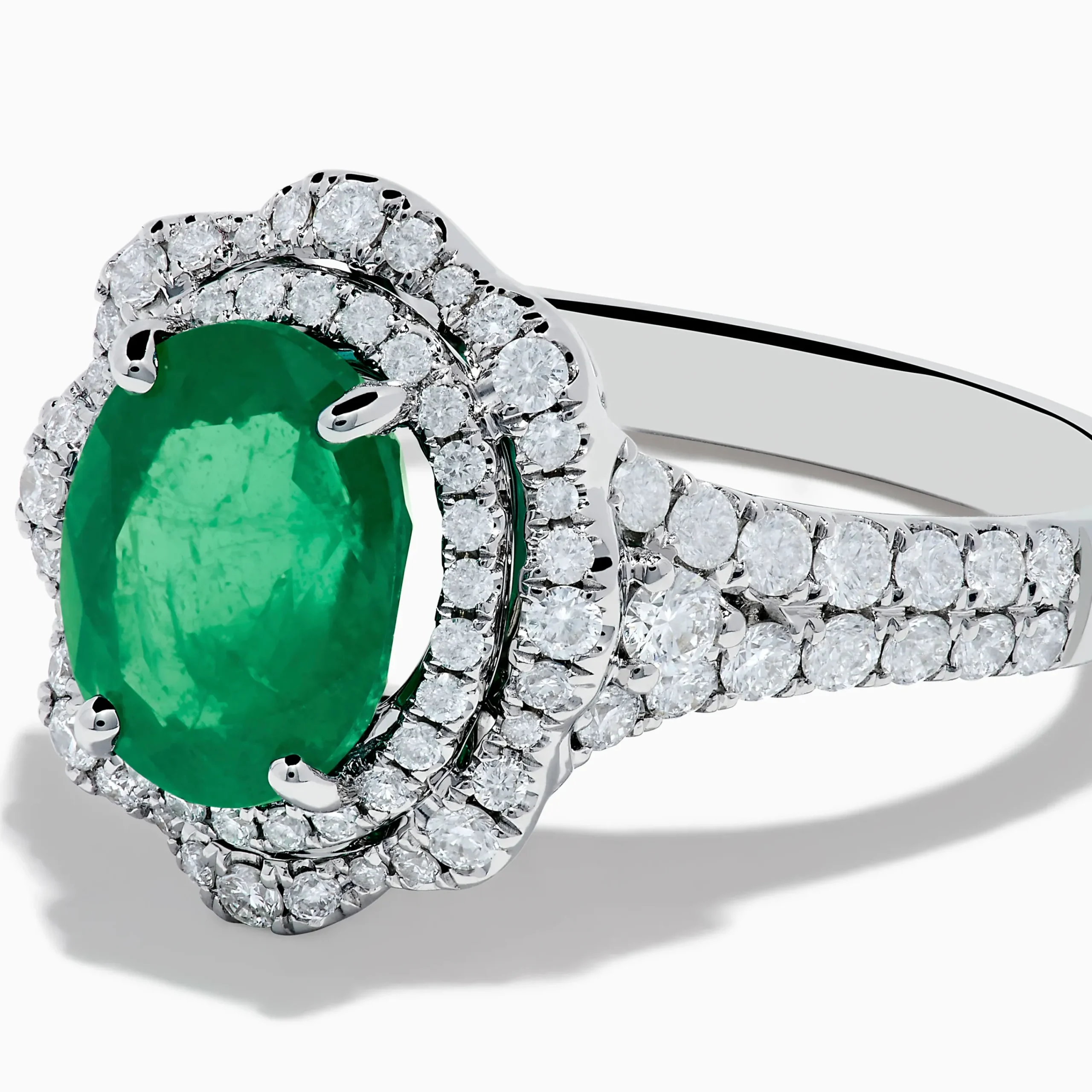 Metal:18K Gold Metal Color:WhiteStone: Oval Emerald 2.11 Stone 2: Round Diamond 0.7418K White Gold Emerald and Diamond R…