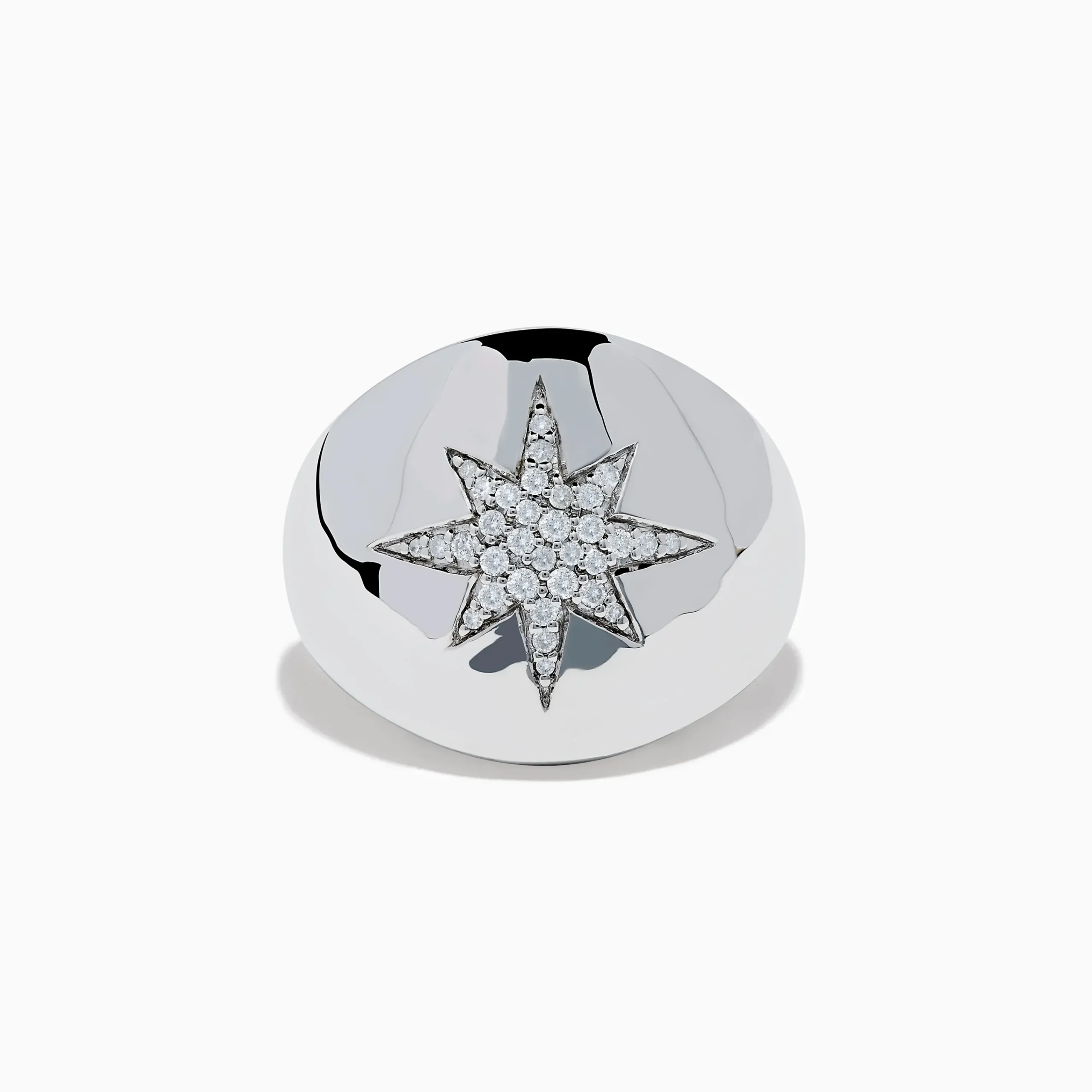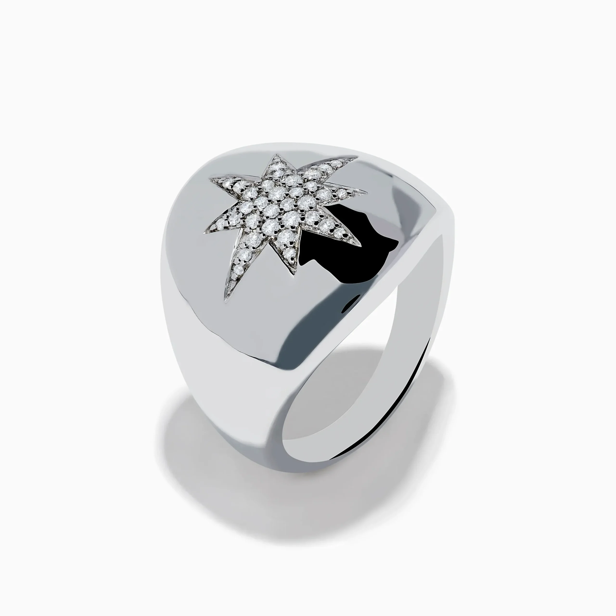 Metal:Sterling Silver Metal Color:WhiteStone: Round Diamond 0.19 925 Sterling Silver Diamond Star Signet Ring
