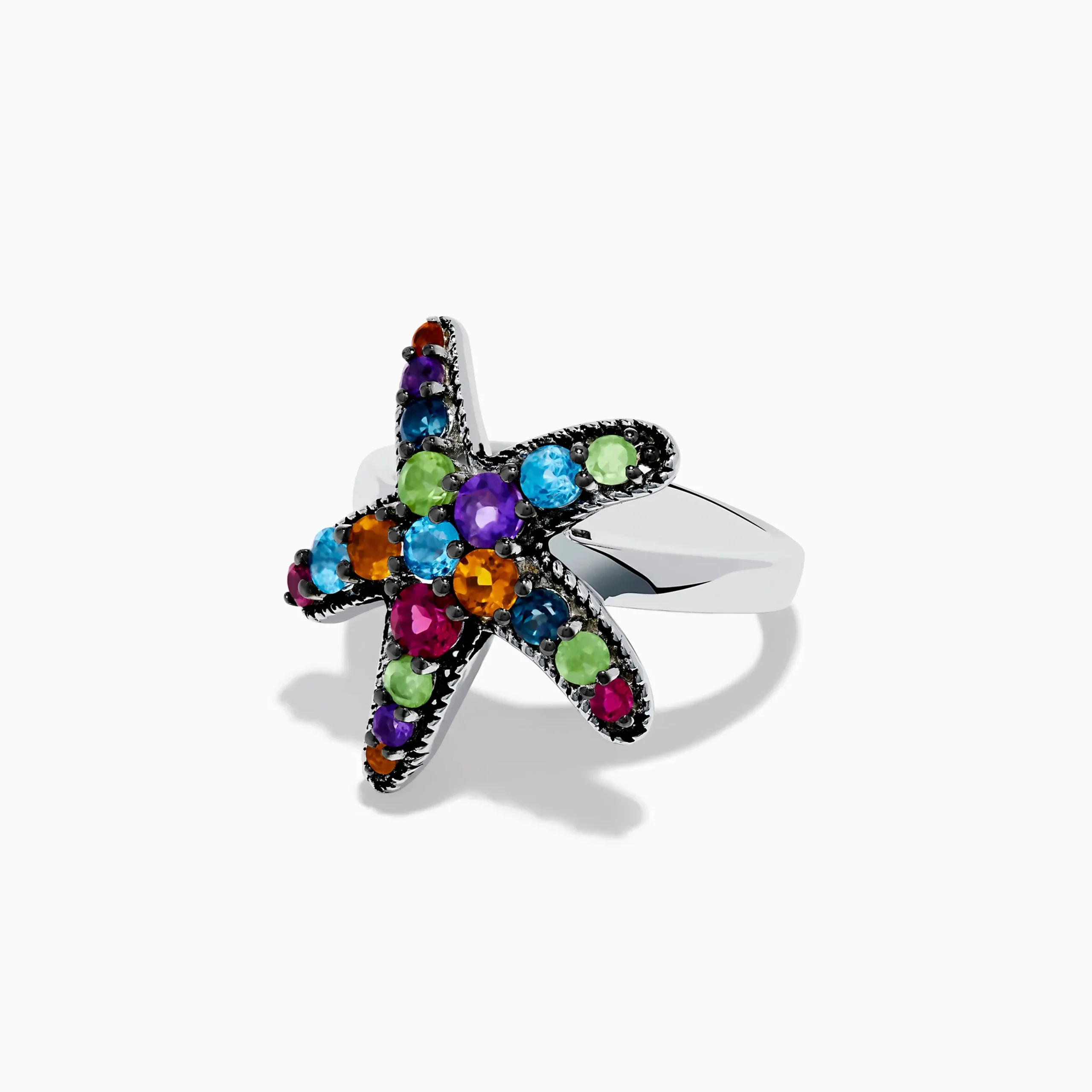 925 Sterling Silver Multi Color Gemstone Starfish Ring