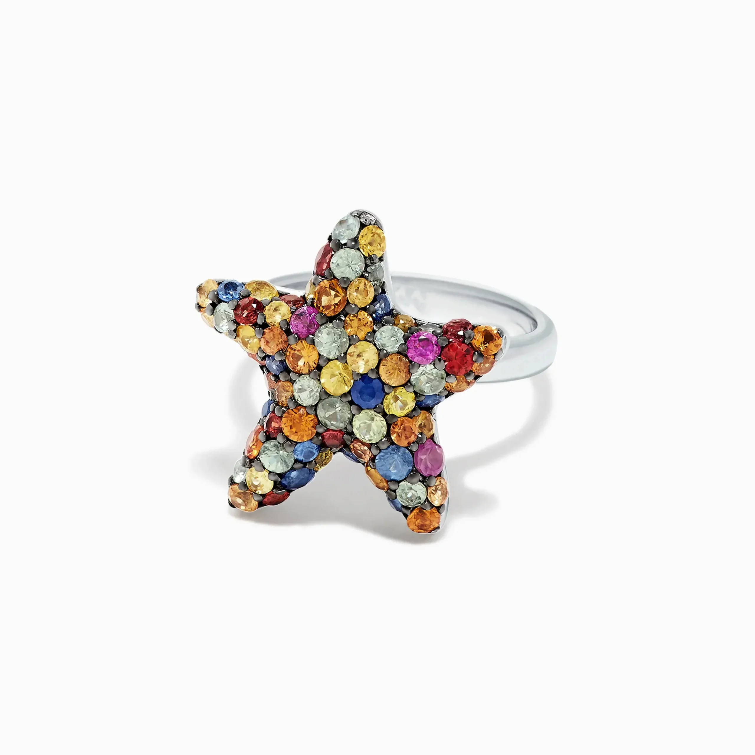 Effy 925 Sterling Silver Multi Sapphire Splash Starfish Ring, 2.90 TCW