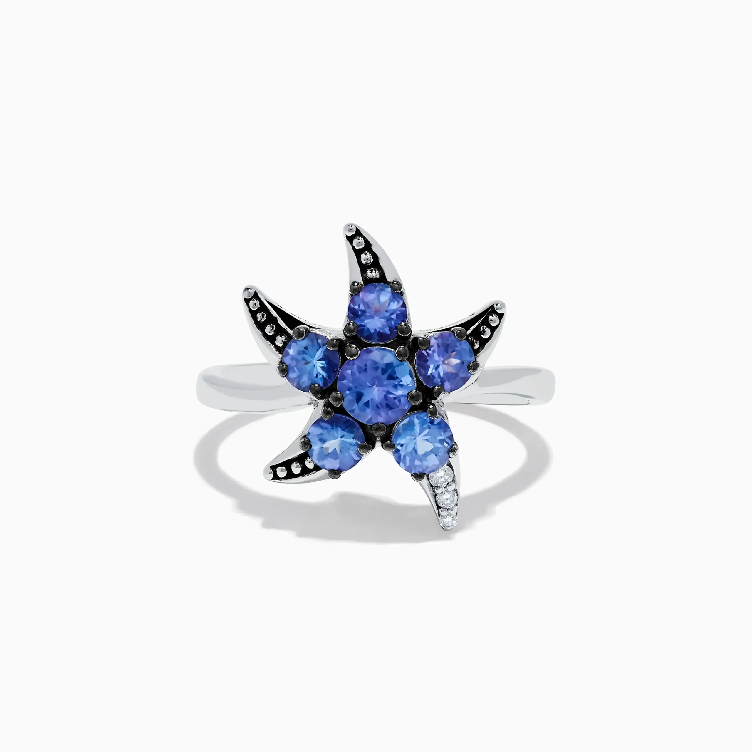 925 Sterling Silver Tanzanite and Diamond Starfish Ring