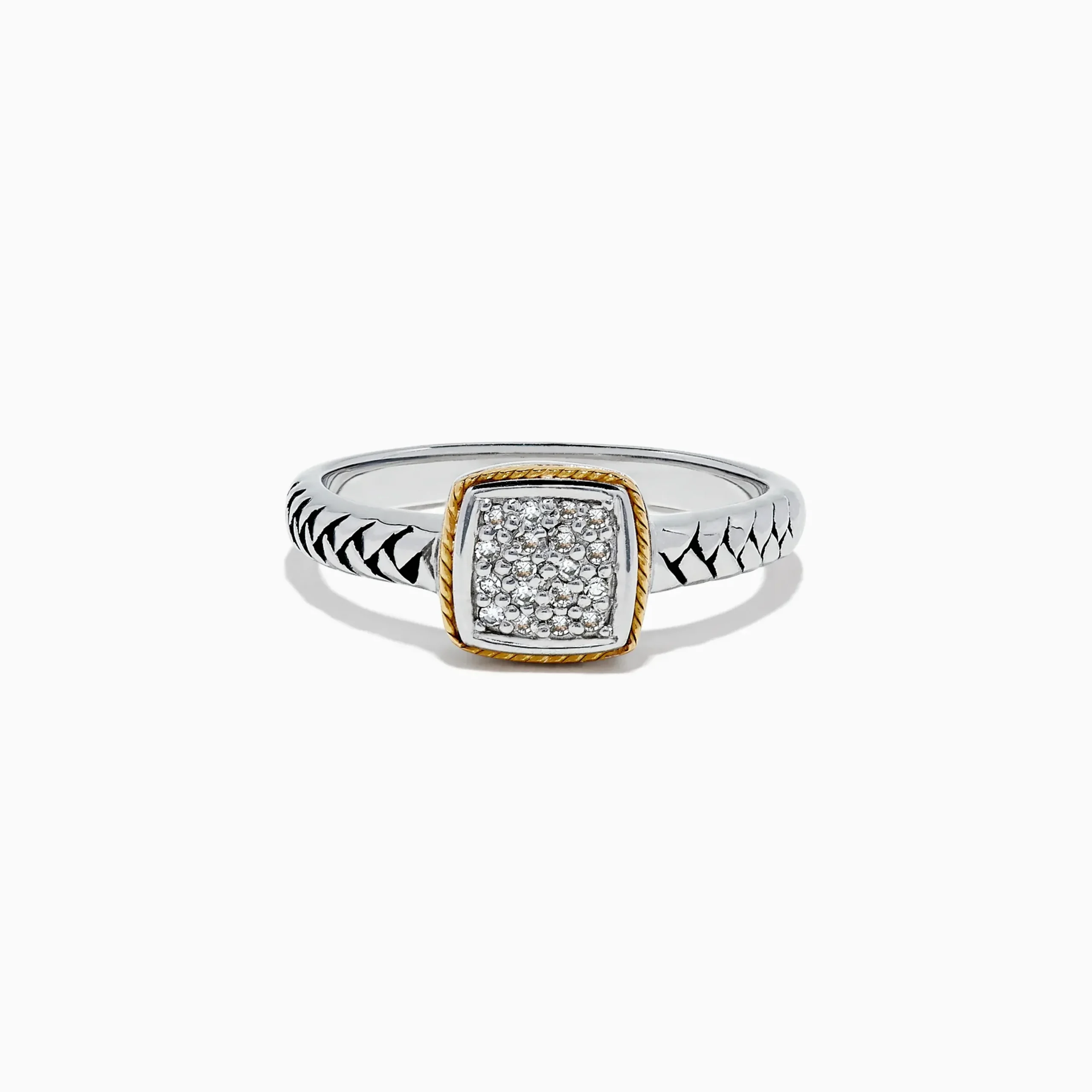 Effy 925 Sterling Silver & 18K Yellow Gold Accented Diamond Ring, 0.07