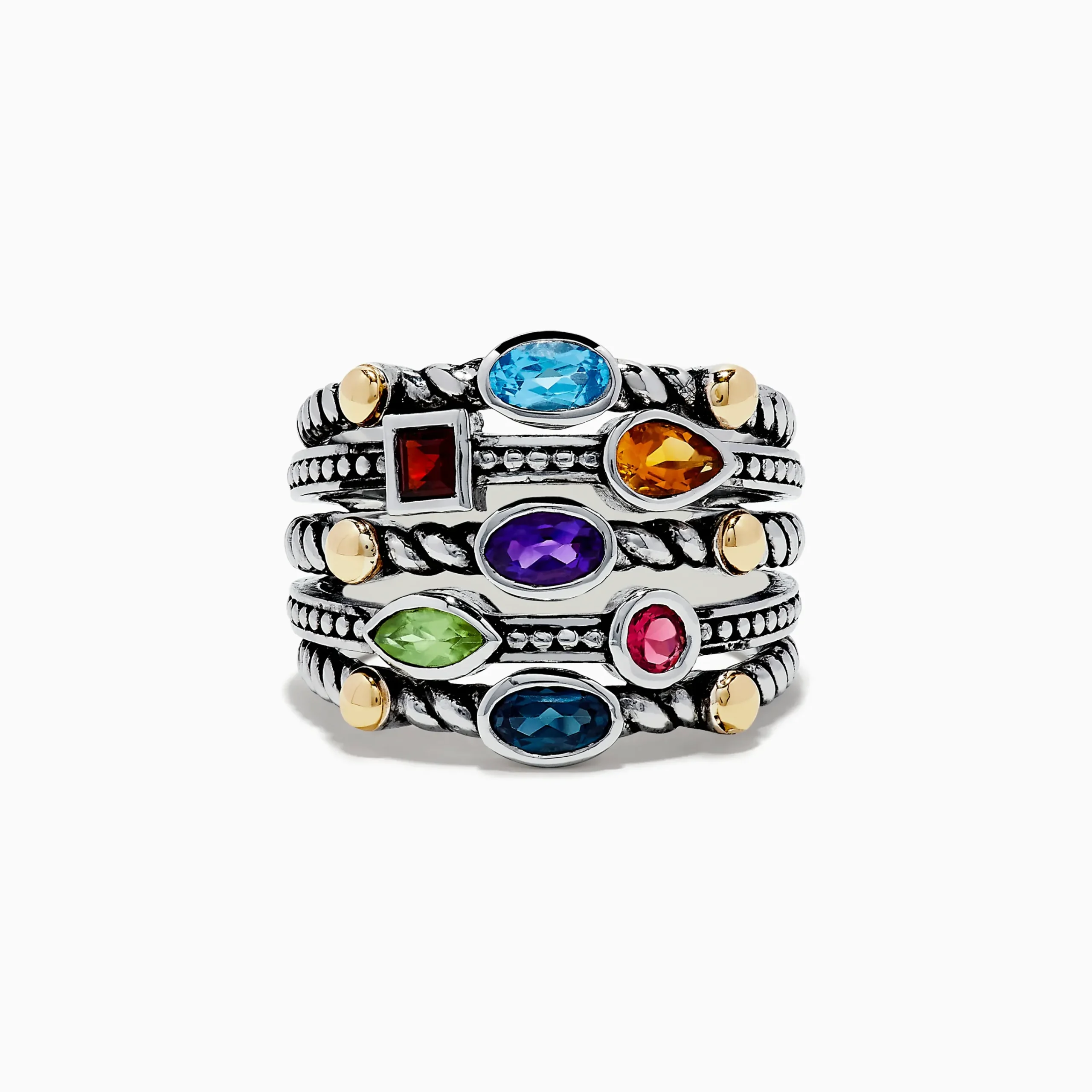 Effy 925 Sterling Silver & 18K Yellow Gold Multi Stone Ring