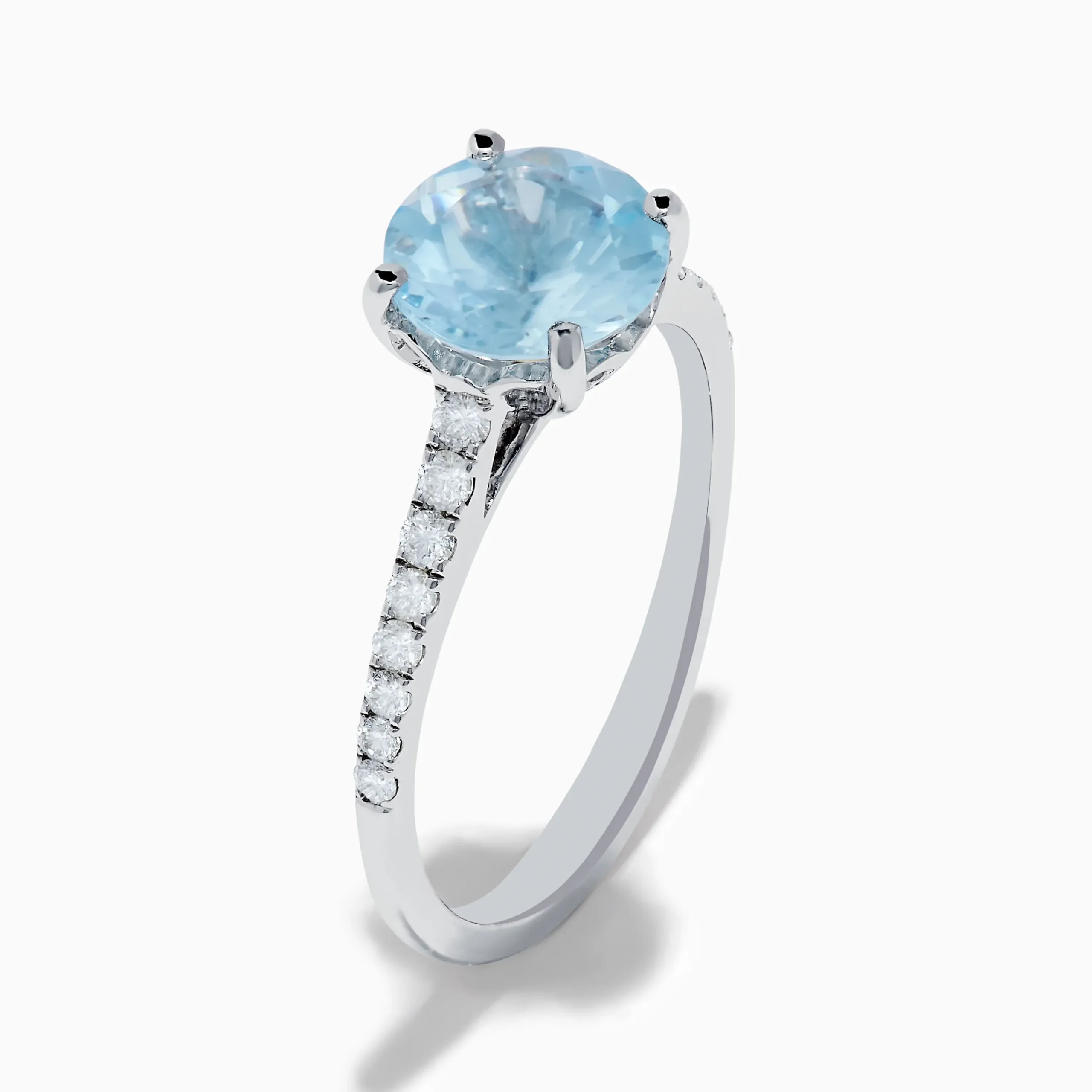 Metal:14K Gold Metal Color:WhiteStone: Round Aquamarine 1.9 Stone 2: Round Diamond 0.21Aquarius 14K White Gold Aquamarin…