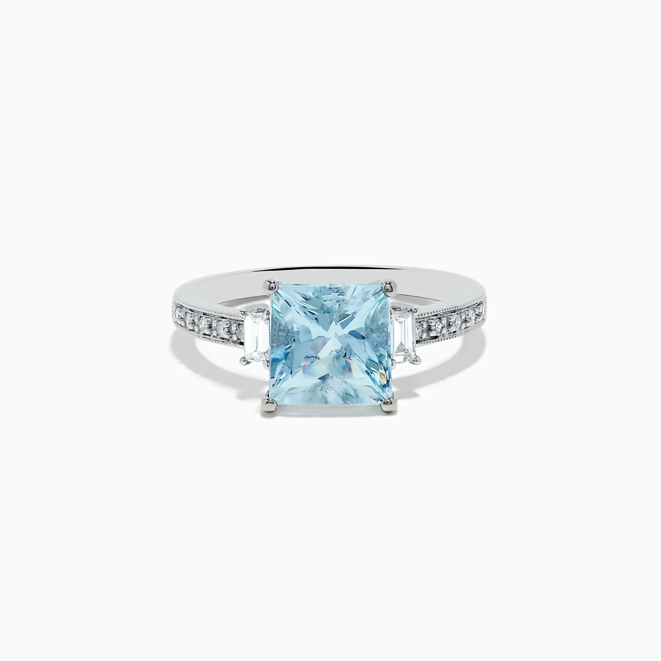 Effy Aquarius 14K White Gold Diamond and Aquamarine Ring