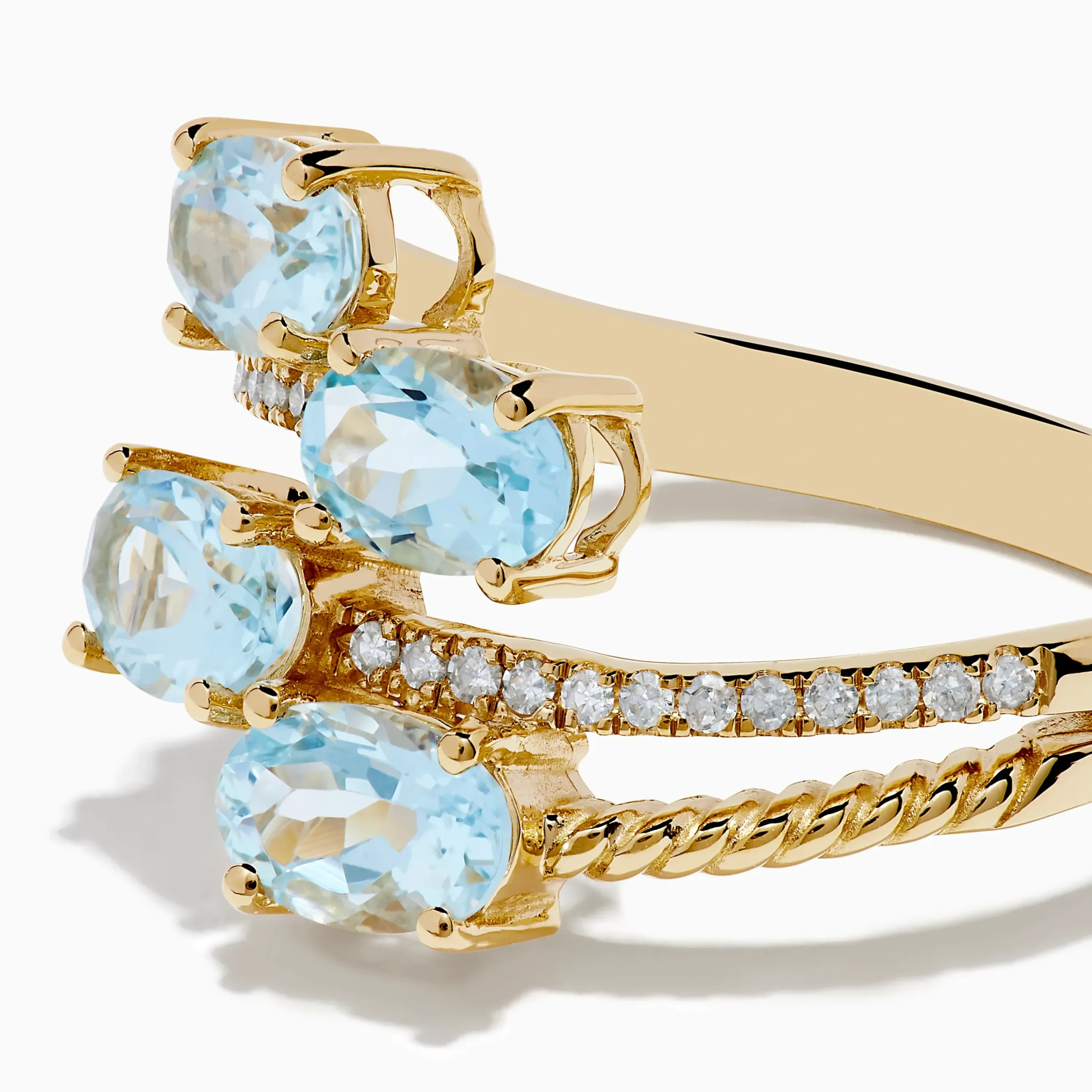 Aquarius 14K Yellow Gold Aquamarine and Diamond Bypass Ring