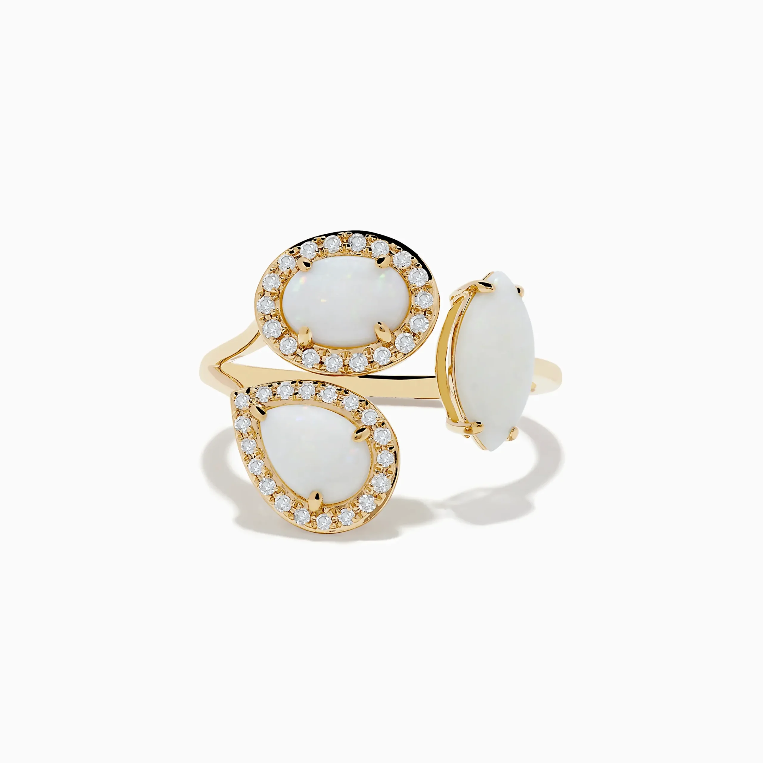 Metal:14K Gold Metal Color:YellowStone: Round Diamond 0.16 Stone 2: Multi Shape Opal 1.4Aurora 14K Yellow Gold Opal and …
