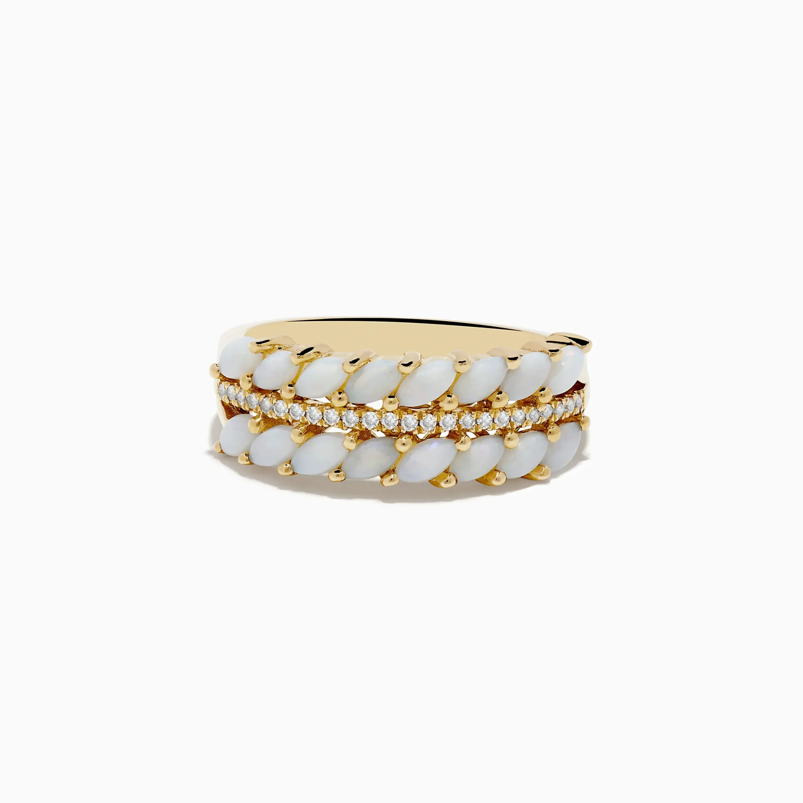 Metal:14K Gold Metal Color:YellowStone: Round Diamond 0.09 Stone 2: Marquise Opal 1.5Aurora 14K Yellow Gold Opal and Dia…
