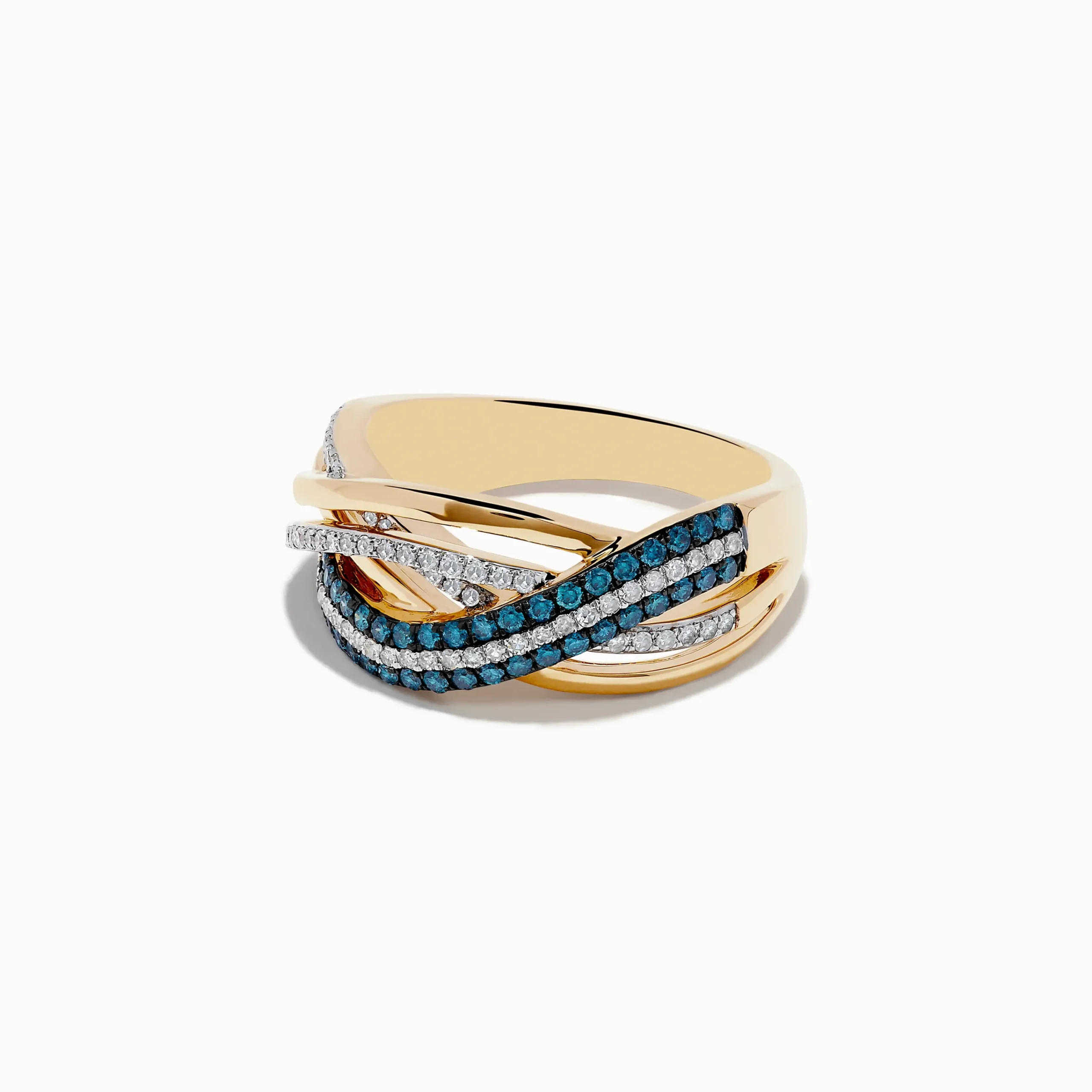 Effy Bella Bleu 14K Yellow Gold Blue and White Diamond Crossover Ring
