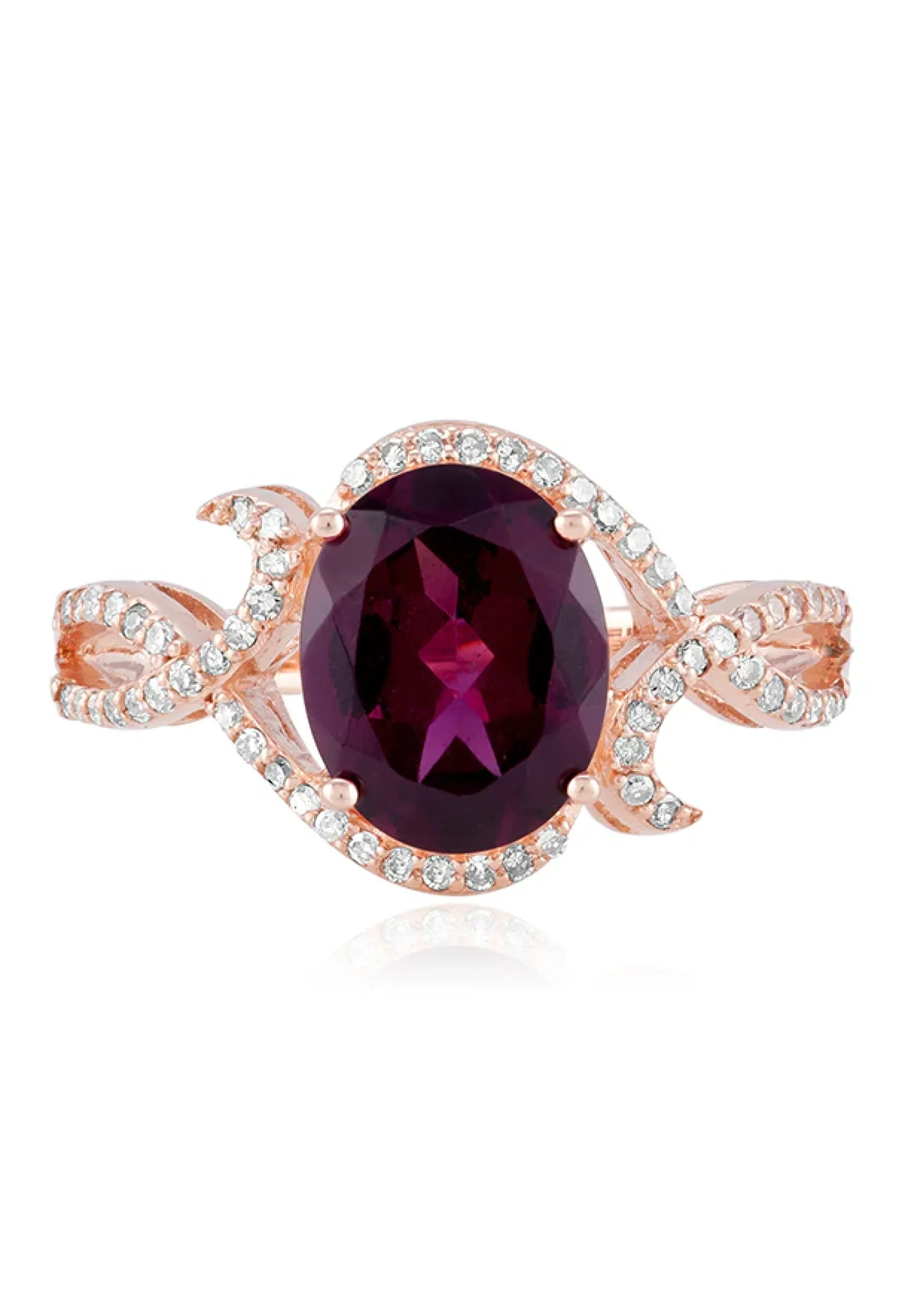 Metal:14K Gold Metal Color:RoseStone: Oval Garnet 2.85 Stone 2: Round Diamond 0.26Effy Bordeaux 14K Rose Gold Rhodolite …