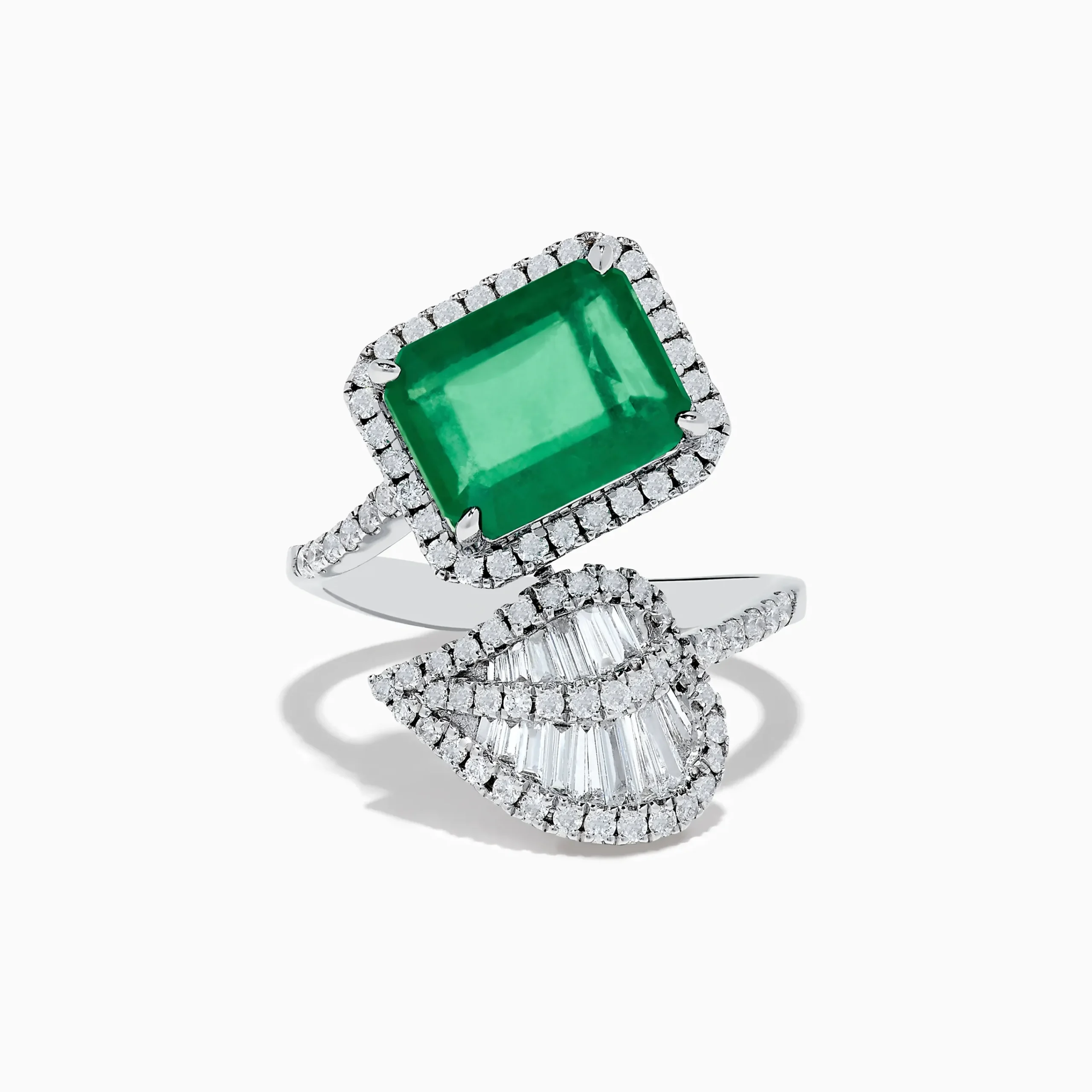 Brasilica 14K White Gold Emerald and Diamond Leaf Ring