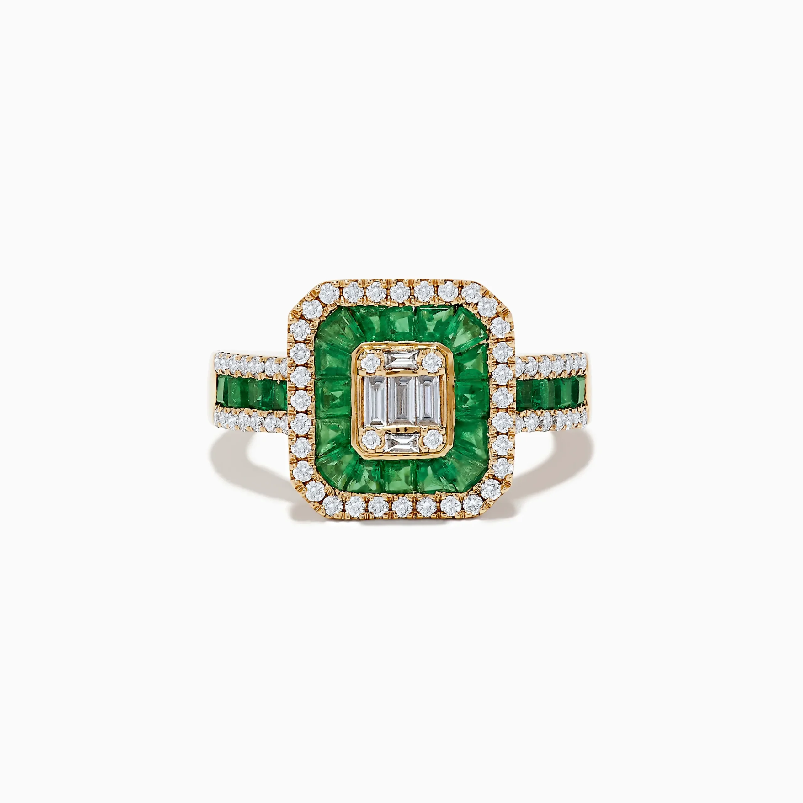 Metal:14K Gold Metal Color:YellowStone: Multi Shape Diamond 0.52 Stone 2: Baguette Emerald 1.37Effy Brasillica 14K Yello…