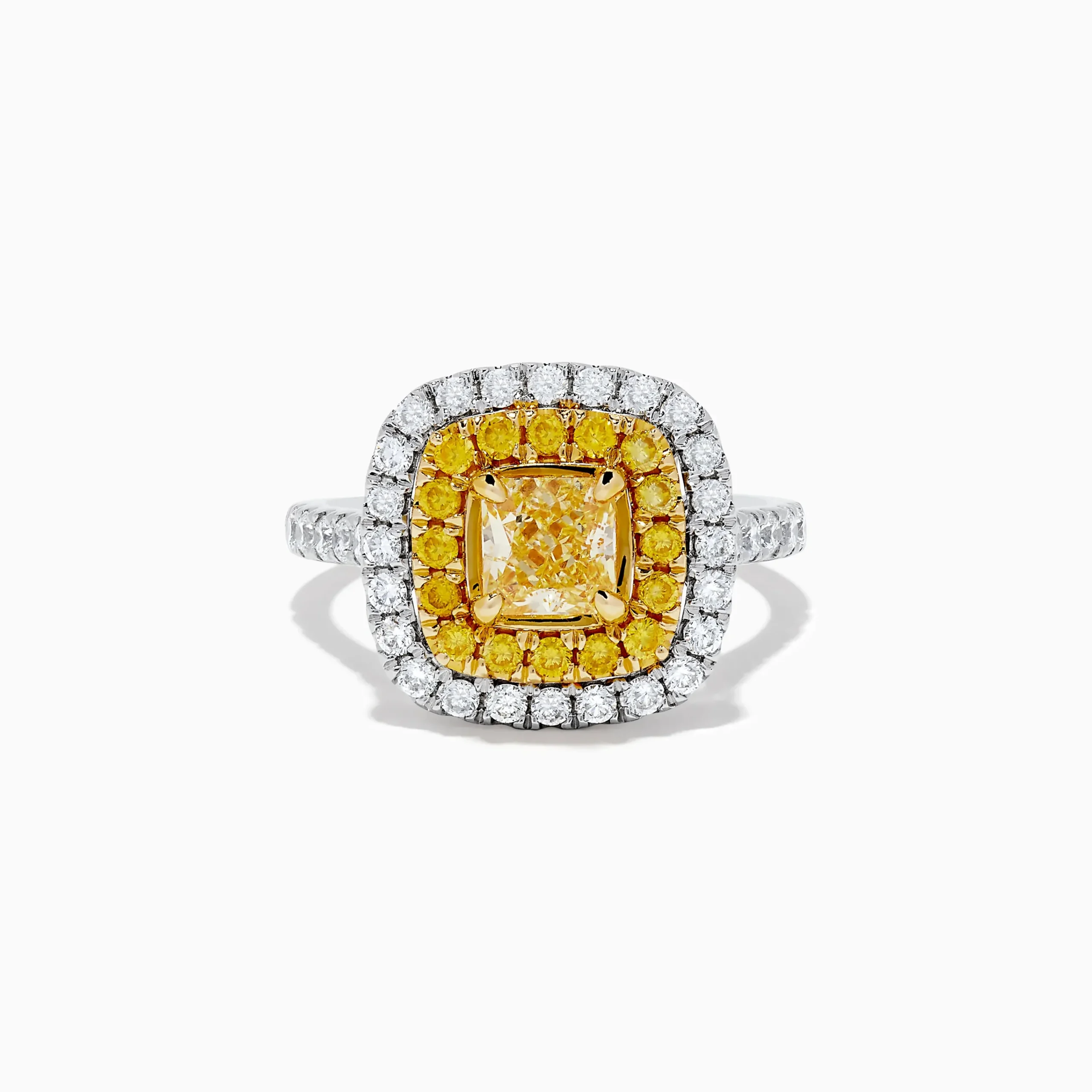 Effy Canare 14k Two Tone Gold Cushion Cut Double Halo Yellow Diamond Ring 1.86 TCW