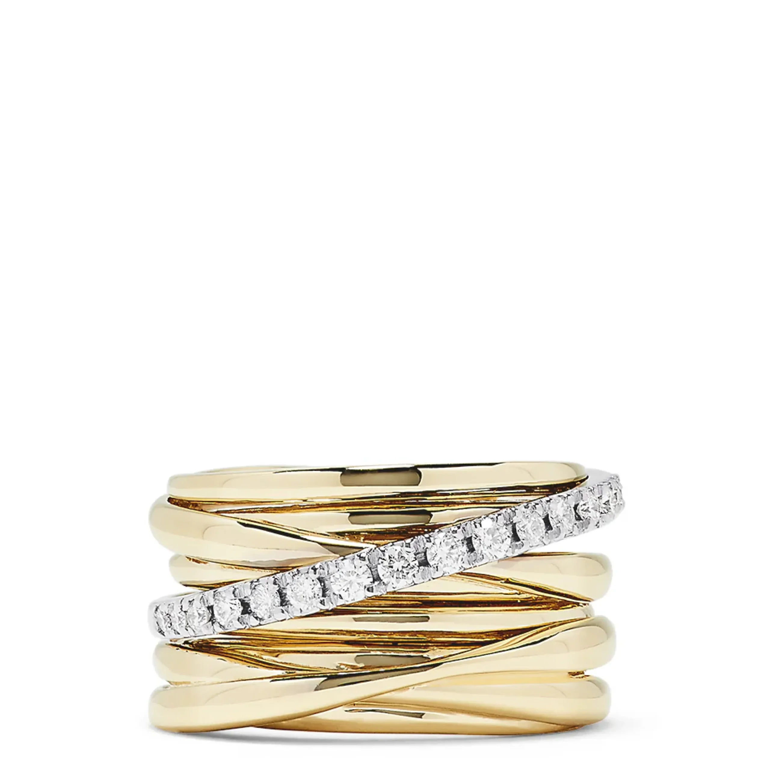 Effy D’Oro 14K Yellow and White Gold Diamond Crossover Ring, 0.39 TCW