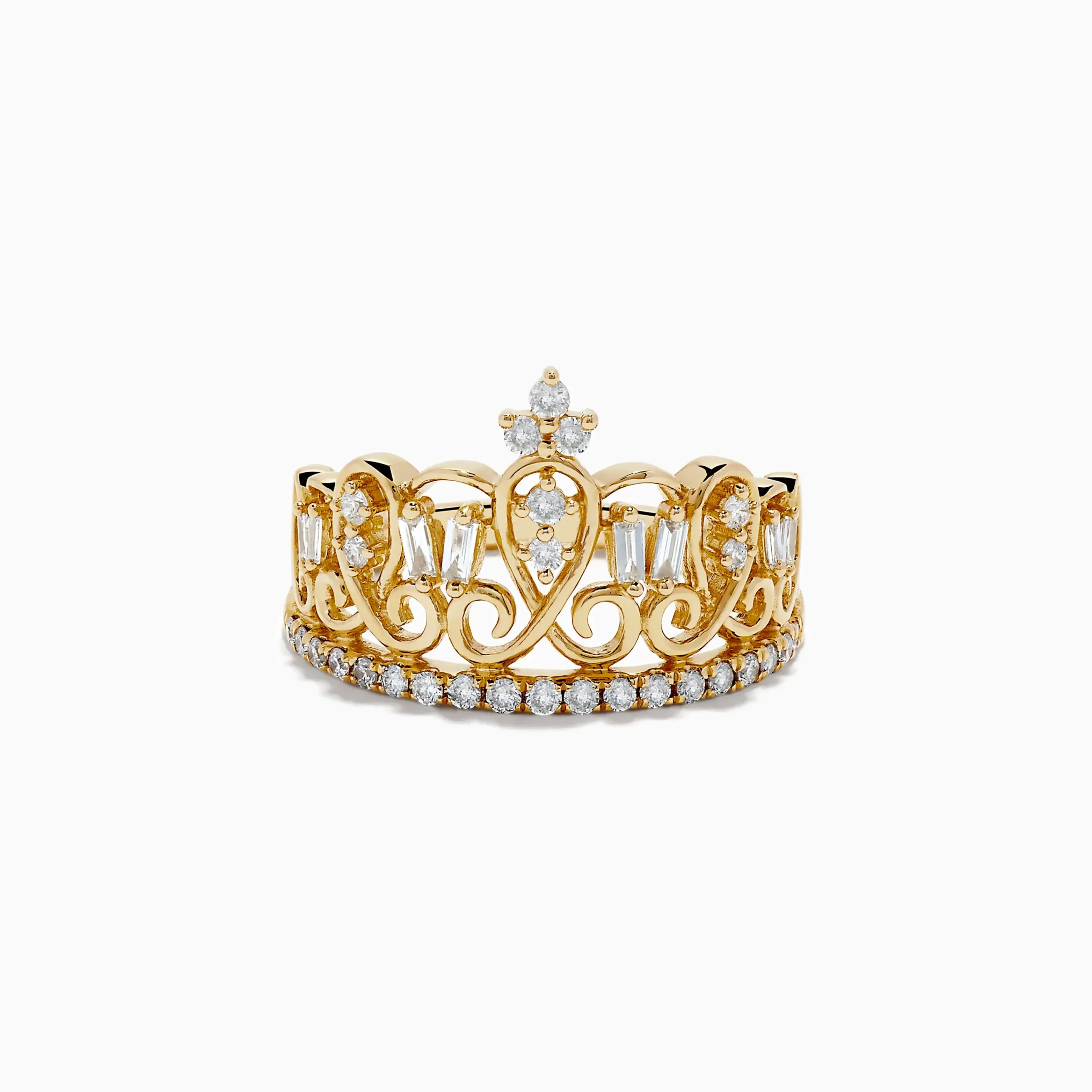 Effy D’Oro 14K Yellow Gold Diamond Accented Crown Ring, 0.41 TCW
