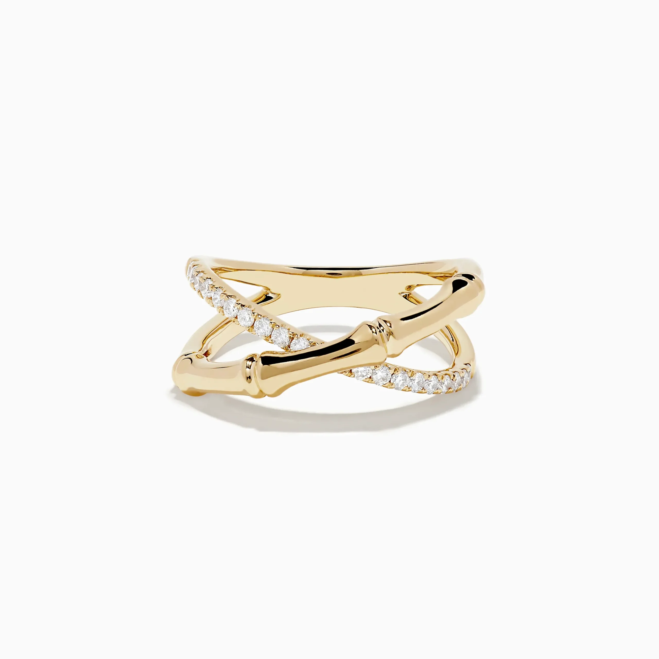 Effy D’Oro 14K Yellow Gold Diamond Criss Cross Bamboo Ring