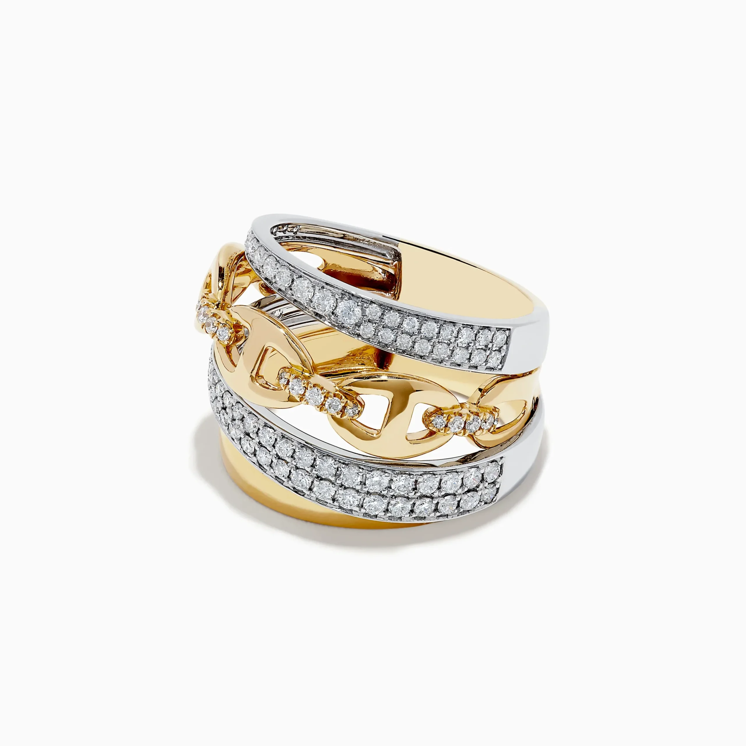 Metal:14K Gold Metal Color:Yellow and WhiteStone: Round Diamond 1.03Effy Duo 14K 2-Tone Gold Anchor Chain Diamond Ring